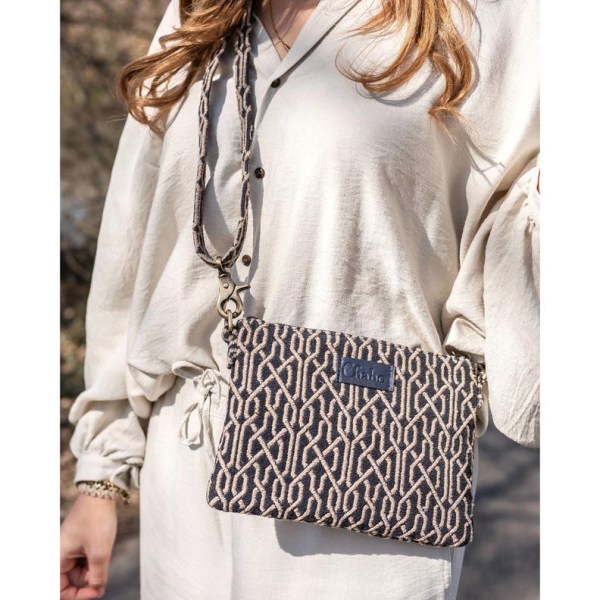 Deze Chabo Crossbody Suus blue is de must-have voor vrouwen die stijl en functionaliteit willen combineren. Gemaakt van textiel en uitgerust met een handige ritssluiting. Kan als clutch of crossbody gedragen worden, ideaal voor diverse gelegenheden. Stijlvolle en praktische keuze. biedt deze compacte tas van 23 x 18 x 2 cm voldoende ruimte voor al je essentials. Dankzij de verstelbare en afneembare schouderband draag je de tas comfortabel over je schouder of crossbody of als clutch. De tas is voorzien van een stevige ritssluiting en een extra binnenvak voor veilige opbergruimte. Koop Chabo lederen handtassen in onze lederwarenwinkel regio Aalst Ninove Geraardsbergen