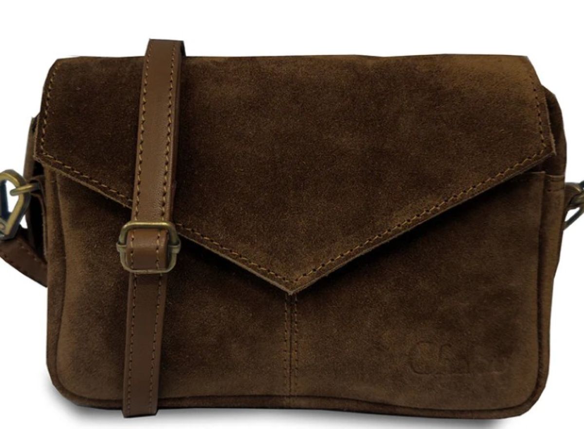 Op zoek naar een compacte, stijlvolle en functionele handtas? De Chabo Rio Romy Bag in suede cognac/ bruin is de perfecte keuze! Gemaakt van hoogwaardig echt leder, straalt deze tas pure elegantie en duurzaamheid uit. Met haar handige formaat van 14 x 21 x 4 cm is de Rio Romy ideaal voor dagelijks gebruik. Draag al je essentials – zoals je telefoon, sleutels en portemonnee – op een georganiseerde en trendy manier. De tas is voorzien van een verstelbare en afneembare schouderriem, waardoor je hem zowel als crossbody als schoudertas kunt dragen. De minimalistische flap met magneetsluiting geeft de tas een stijlvolle en tijdloze uitstraling. Bovendien biedt het extra vak aan de binnenzijde praktische opbergruimte.Of je nu een casual outfit draagt of een chique look wilt afmaken, deze veelzijdige tas past overal bij.Vindt chabo lederen handtassen in onze lederwarenwinkel regio Aalst Ninove Geraardsbergen.