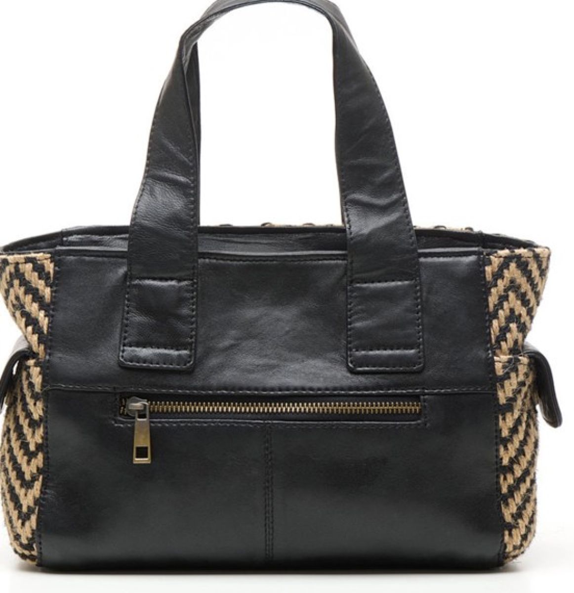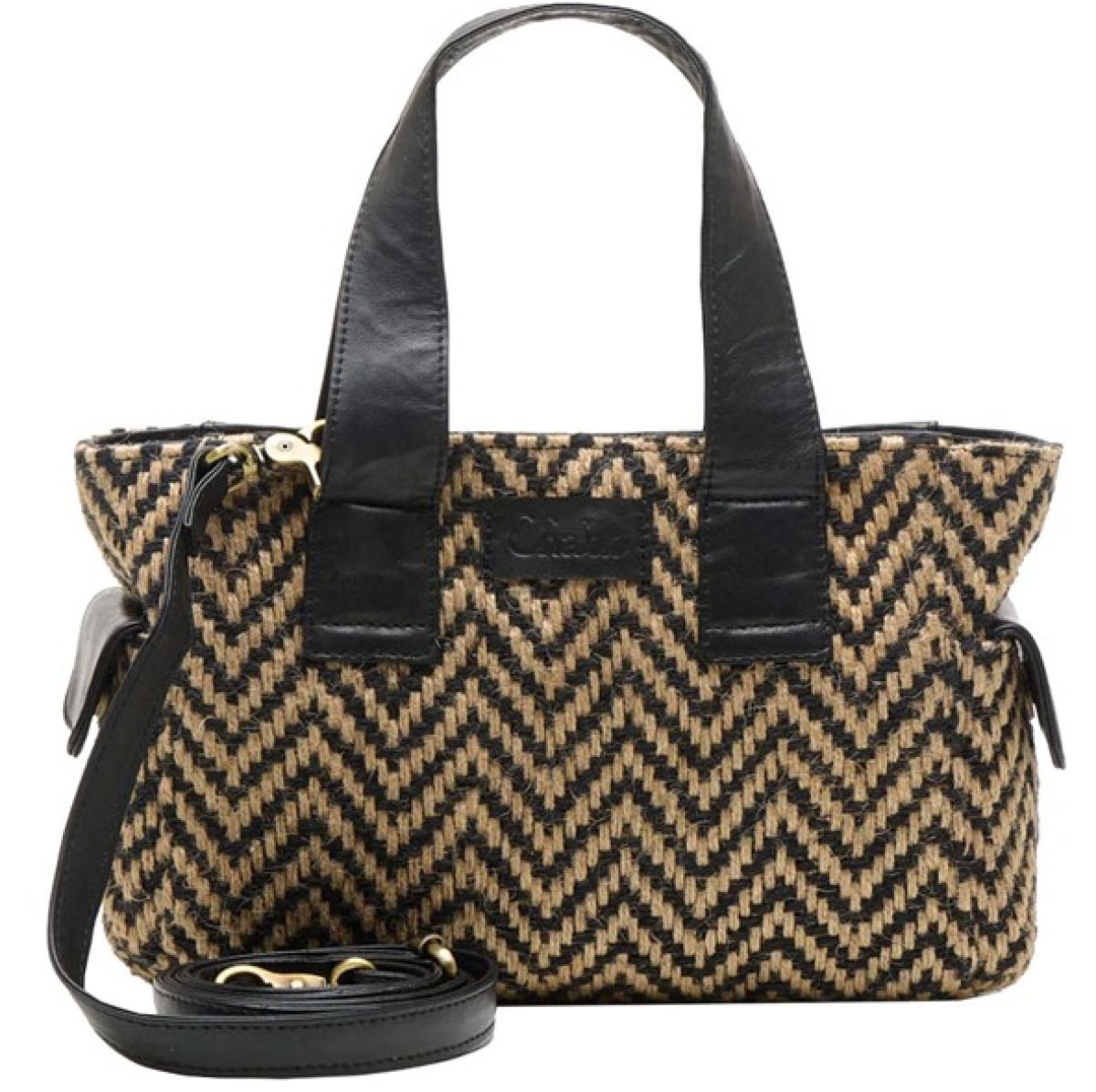 De Chabo Romio jacquard handbag black is de must-have voor vrouwen die stijl en functionaliteit willen combineren. Gemaakt van hoogwaardige jacquardstof in zwart/caramel voorkant en effen zwart leer achterkant biedt deze compacte tas van 26 x 19 x 7 cm voldoende ruimte voor al je essentials. De onderzijde van de tas heeft een volledige leren bodem voor extra stevigheid. Dankzij de verstelbare en afneembare schouderband draag je de tas comfortabel als crossbody of in de hand met zijn brede schouderbanden. De tas is voorzien van een stevige ritssluiting en een hoofdvak en zijvakken voor veilige opbergruimte. Ook nog zijzakjes. Koop Chabo lederen handtassen in onze lederwarenwinkel regio Aalst Ninove Geraardsbergen