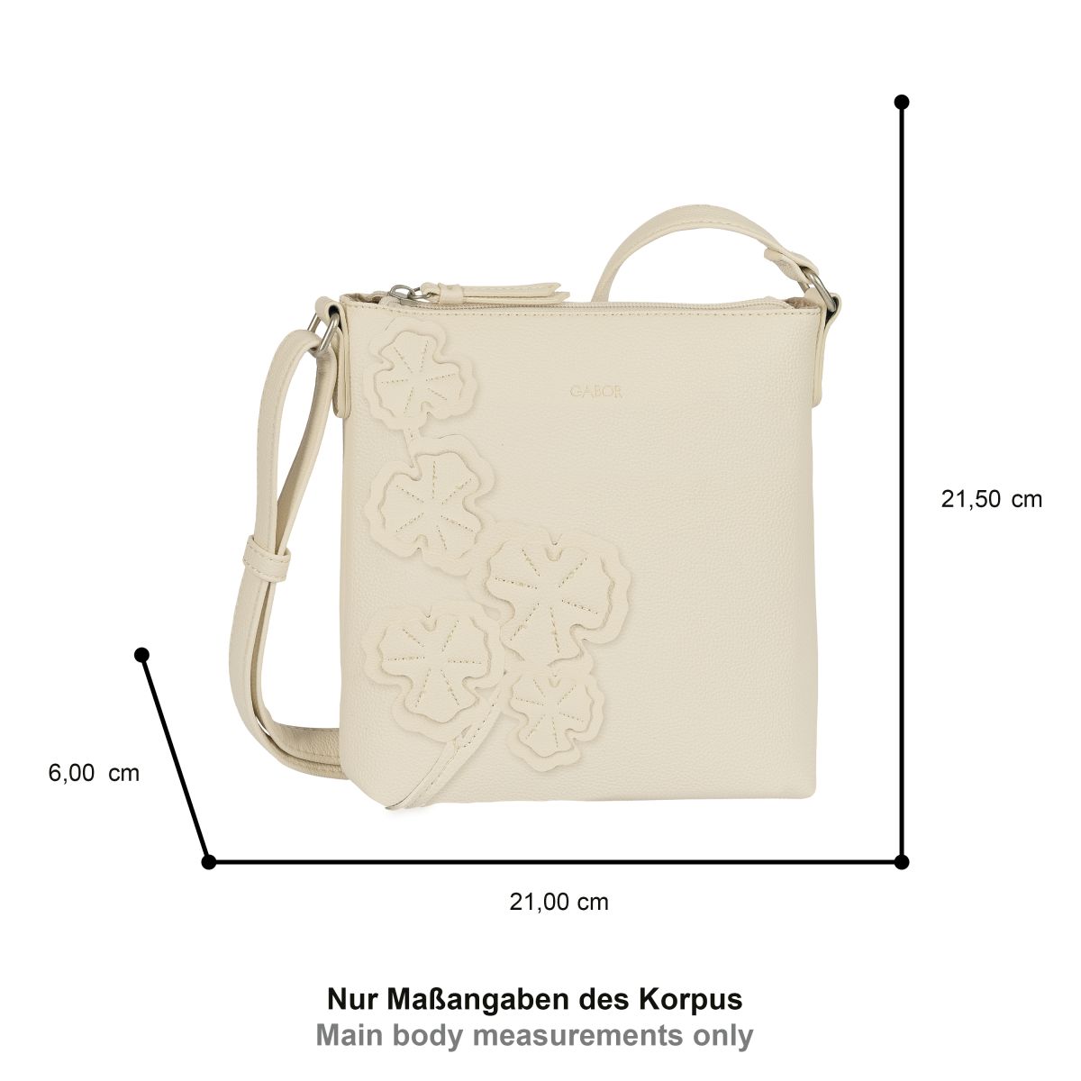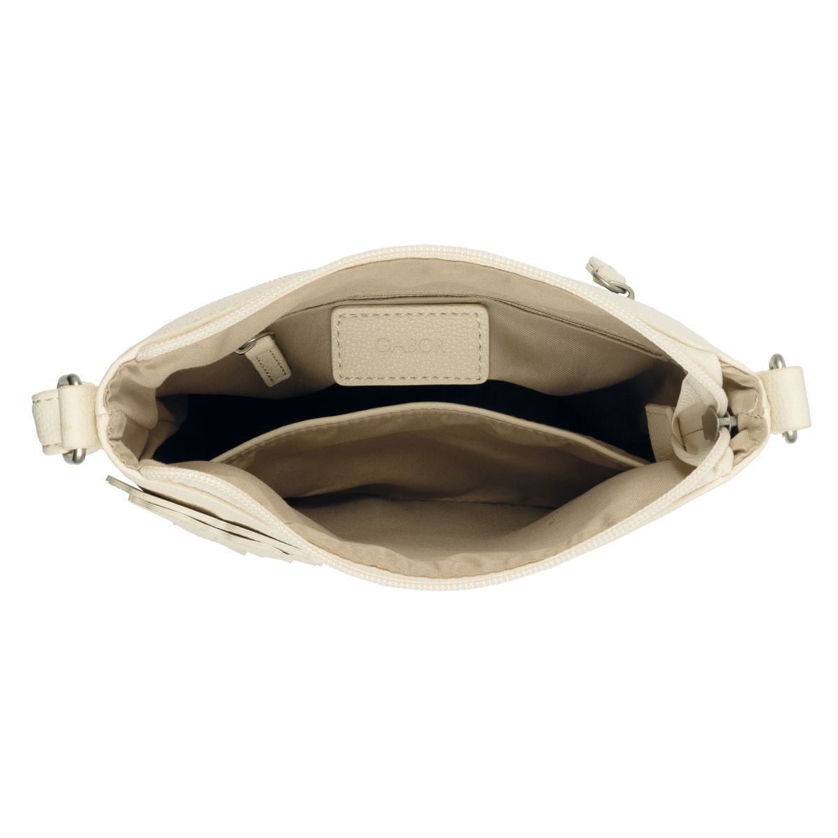Gabor bags artikel 012440 Jovita cross bag in kleur off white, ecru. De tas is gemaakt uit imitatieleder. De riem in kunstleder is verstelbaar. De tas heeft 1 groot vak dat af te sluiten is met een rits en achteraan een vakje met rits. Vooraan vervaardigd met 3D bloemen op de tas. De tas binnenin zit een kleiner vak met rits en 2 kleinere insteekvakken. Afmetingen: 21 x 6 x21.5cm. Gabor handtassen vindt men in de regio Aalst, Ninove, Geraardsbergen en Liedekerke of men kan online bestellen op onze webshop.