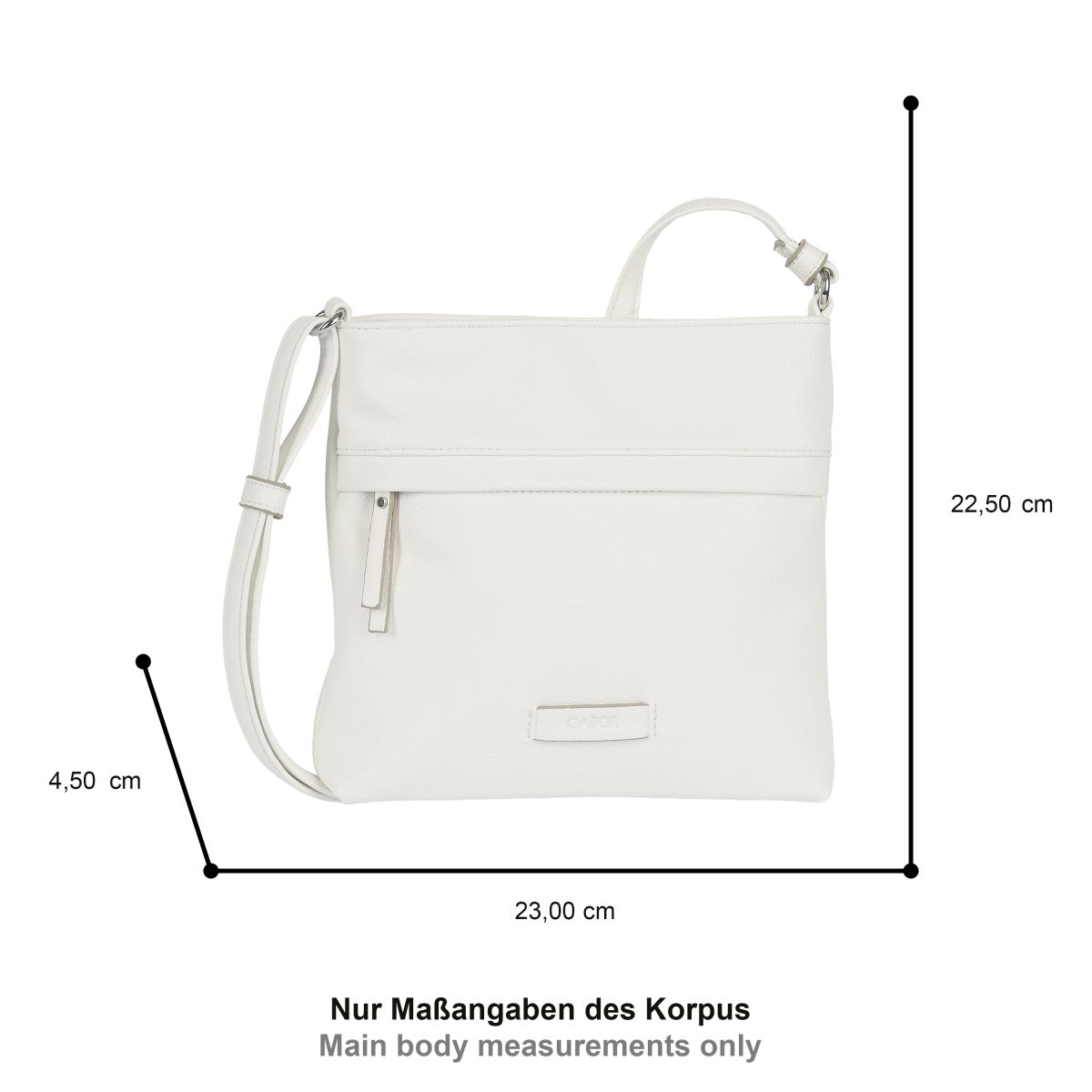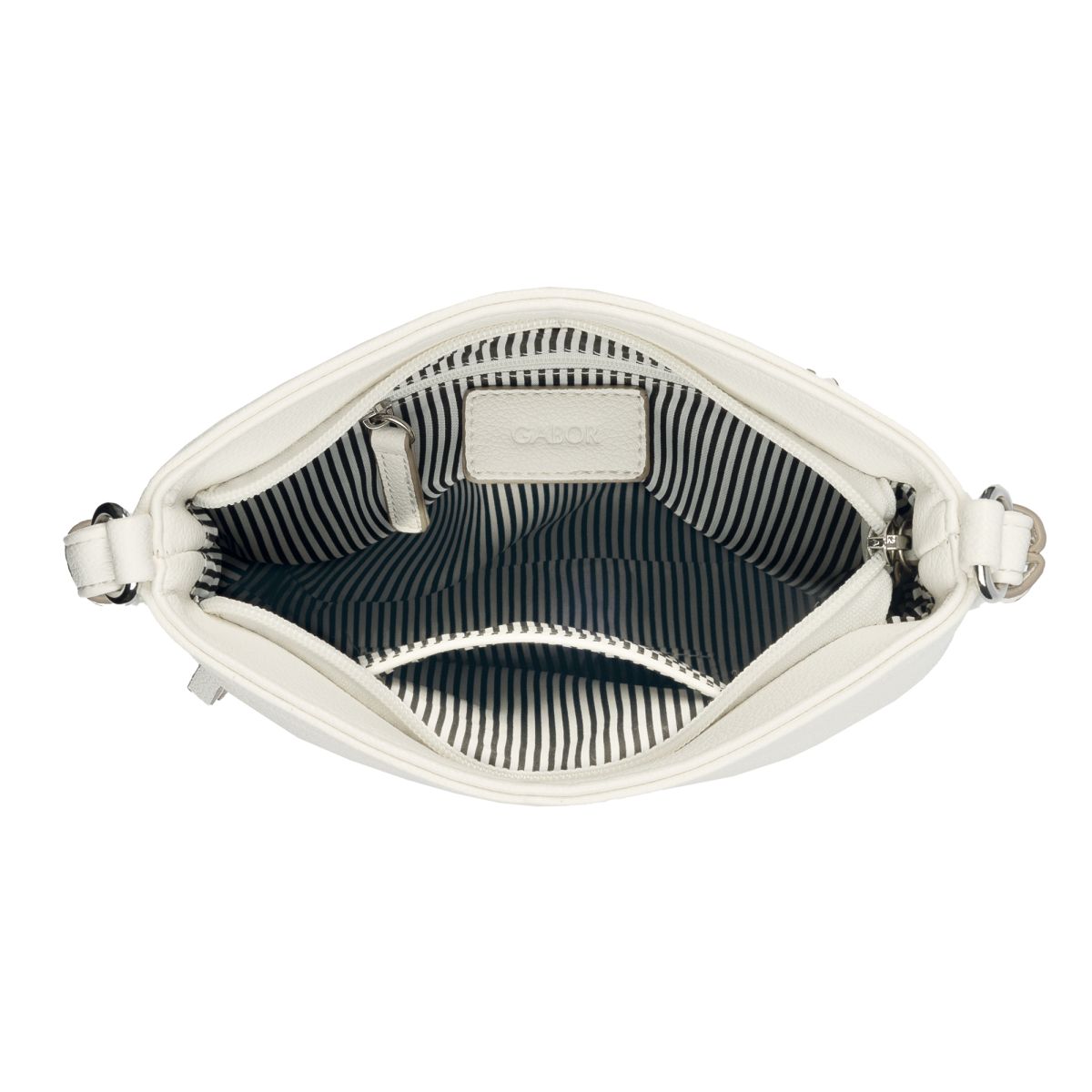 Gabor bags artikel 012428 Faye cross bag in kleur wit. De tas is gemaakt uit imitatieleder. De riem in kunstleder is verstelbaar. De tas heeft 1 groot vak dat af te sluiten is met een rits en een klein vak met rits aan de voorkant. Binnenin zit een kleiner vak met rits en 2 kleinere insteekvakken. Afmetingen: 23 x4,5x22.5cm. Gabor handtassen vindt men in de regio Aalst, Ninove, Geraardsbergen en Liedekerke of men kan online bestellen op onze webshop.