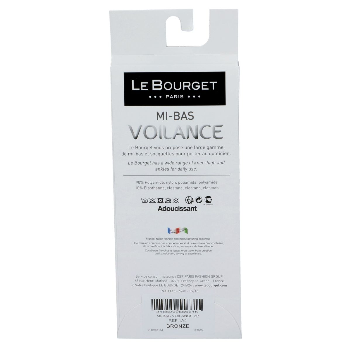 LE BOURGET artikel 1A46 MI-BAS (knee-highs) Voilance Satiné 15D zijn bronze (gebruinde tint) satijnzachte transparante kniekousen met een luxe randpatroon om elke dag te dragen. Verkocht in partijen van 2. Buitensporige comfortrand, versterkte tenen. Opaciteit 15 Denier. Oeko-Tex® standaard 100 gecertificeerd product garandeert de afwezigheid van stoffen die schadelijk of irriterend voor de huid zijn.