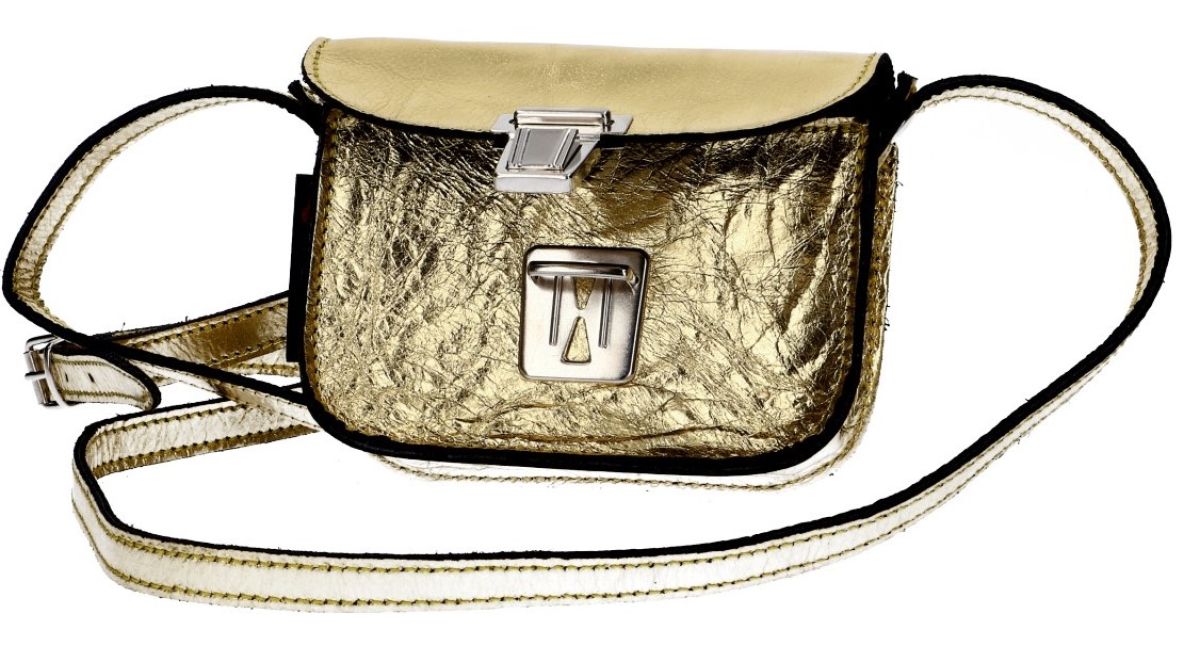 Goud kleur mini handtasje, schoudertasje of clutch van het merk Own Stuff van de Belgische lederwarenfabrikant RUITERTASSEN.Dit klein gouden schoudertasje meet 14 cm breed op 10 cm hoog op 3,5 cm diep is vervaardigd uit echt kwaliteitleder en is voorzieneen metalen drukslotje. Dit mini handtasje of pochette is speciaal op de markt gebracht voor meisjes communicanten of lentefeest meisjes.Perfect passend bij gouden schoentjes en goede opbergplaats voor onder andere smartphone.Communie handtasjes en schoudertasjes vindt men in onze schoenenwinkel regio Aalst, Ninove, Liedekerke, Geraardsbergen of kan menonline bestellen op onze webshop.