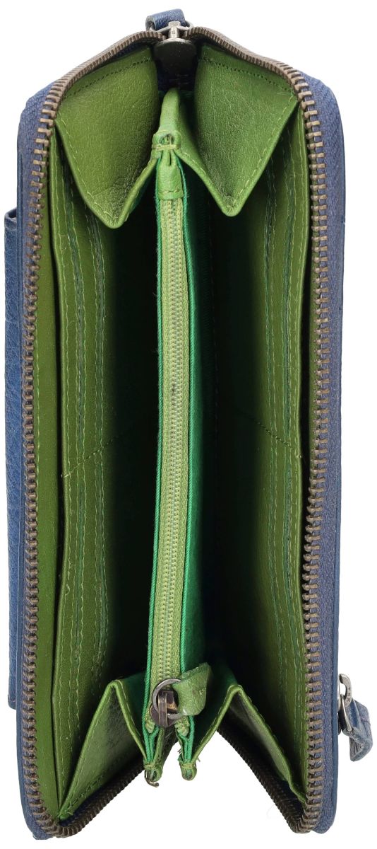 Deze royal blue lederen clutch van het Nederlandse merk SticksandStones combineert functionaliteit met een frisse, eigentijdse uitstraling. Met afmetingen van 20 x 10 x 3 cm is dit model ideaal als ruime portemonnee of compacte clutch voor dagelijks gebruik. Het soepel, licht generfde leder geeft een natuurlijke look die met de tijd alleen maar mooier wordt. De praktische indeling biedt meerdere vakken voor kaarten en briefgeld, aangevuld met een centraal ritsvak voor muntgeld. De opvallende groene lederen binnenzijde zorgt voor een speels kleurcontrast en maakt deze uitvoering extra uniek. Dankzij extra ritsvakken aan de buitenzijde heb je kleine essentials steeds snel bij de hand. De rondomlopende ritssluiting houdt alles veilig opgeborgen, terwijl het afneembare polsriempje zorgt voor extra draagcomfort. Een schaars en karaktervol accessoire voor liefhebbers van authentiek leder en kleur.
