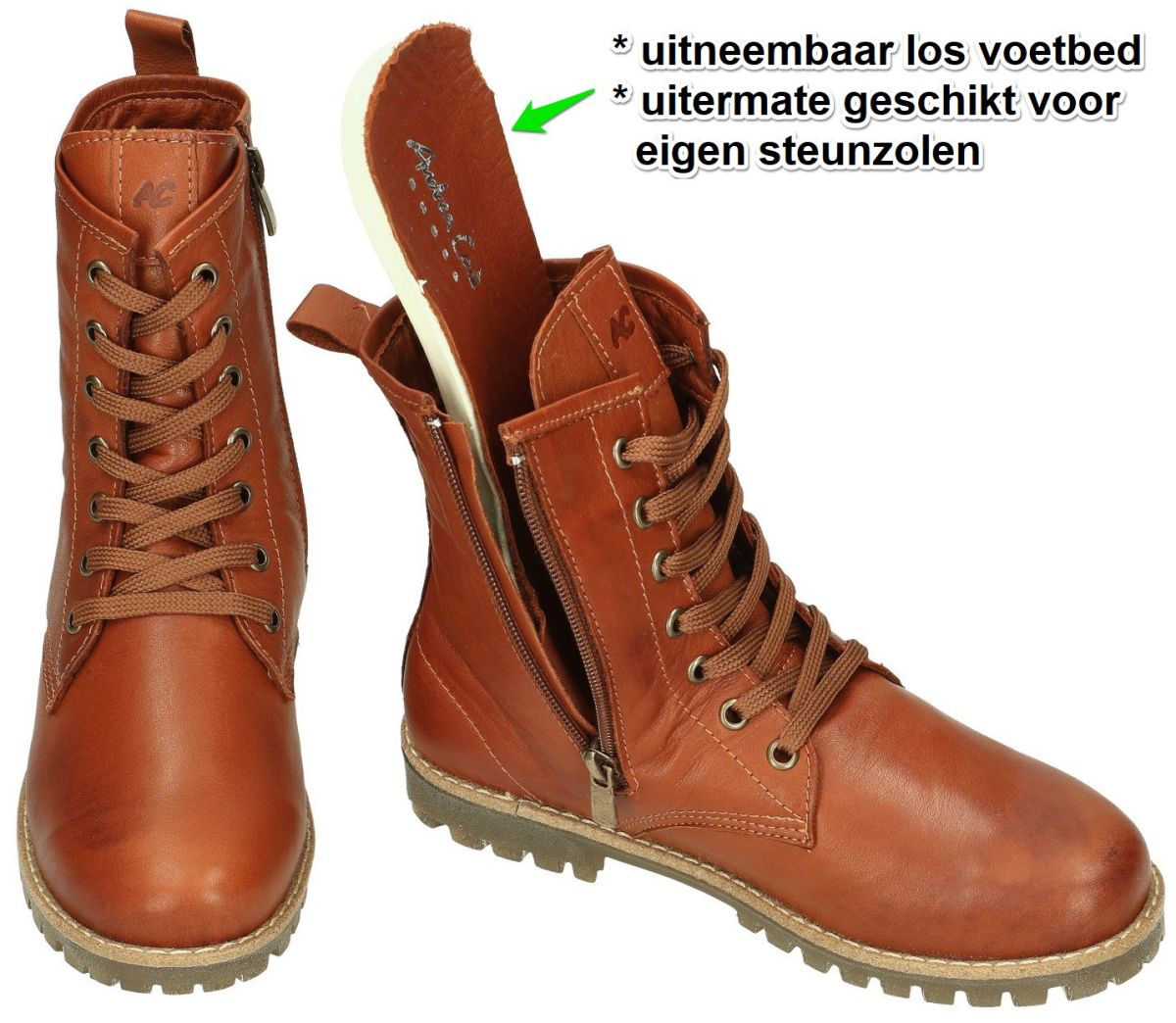 Andrea Conti artikel/model 0342847-070 kastanie zijn kastanje bruine lederen half hoge veterlaarzen of veterboots uit de nieuwe herfst/winter 2023 collectie van het Spaanse schoenenmerk Andrea Conti. Deze platte lace-up boots of half boots van Andrea Conti zijn vervaardigd in een kastanje bruin of cognac bruin super zacht natuurlijk gelooid chroomvrij leder. Deze half hoge veterlaarzen van Andrea Conti zijn voorzien van zowel veters als ritssluiting zodat deze mooi aan het been aangesloten kunnen worden. Samen met het dik uitneembaar met leder bekleed voetbed staat dit garant voor een uitermate comfortabel draaggevoel en zijn deze bootsjes ook zeer geschikt om uw eigen steunzolen in te plaatsen. Deze dames bottines staan op een dikke platte rubber loopzool met een grip-vast profiel. Andrea Conti schoenen en laarsjes kan men kopen in onze schoenenwinkel regio Aalst, Ninove, Geraardsbergen, Zottegem, Liedekerke of online bestellen op onze webshop.