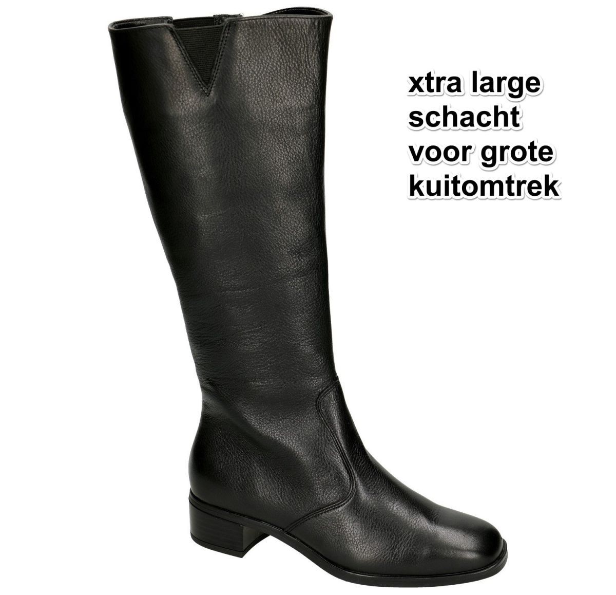 ARA artikel/model 12-31805 01H cervocalf schwarz XL schaft zijn damesschoenen meer bepaald extra brede met grote schachtomtrek zwarte lederen geklede hoge laarzen uit de nieuwe herfst/winter 2023 collectie van het Duitse schoenenmerk en fabrikant ara. Deze hoogcomfort ARA XL laarzen hebben een extra wijde schachtomtrek speciaal voor grote been of kuitomtrek. Bovendien hebben deze nette laarzen van ara een extra wide H-wijdte leest voor brede en volumineuze voeten en zijn voorzien van een uitneembaar los dik highsoft voetbed dan indien noodzakelijk kan worden vervangen door eigen steunzolen of corrigerende voetbed. Deze modieuze en toch tijdloze vrouwenlaarzen staan op een comfortabele hak van slechts 3,5 cm hielhoogte en schokabsorberende loopzool. De vierkante neus of tip zorgt voor een elegante en fijne look zelfs aan een wat robuust been en voet. Ara XL laarzen vindt men in onze schoenenwinkel regio Aalst, Ninove, Geraardsbergen, Zottegem, Liedekerke of kan men online bestellen op onze webshop.