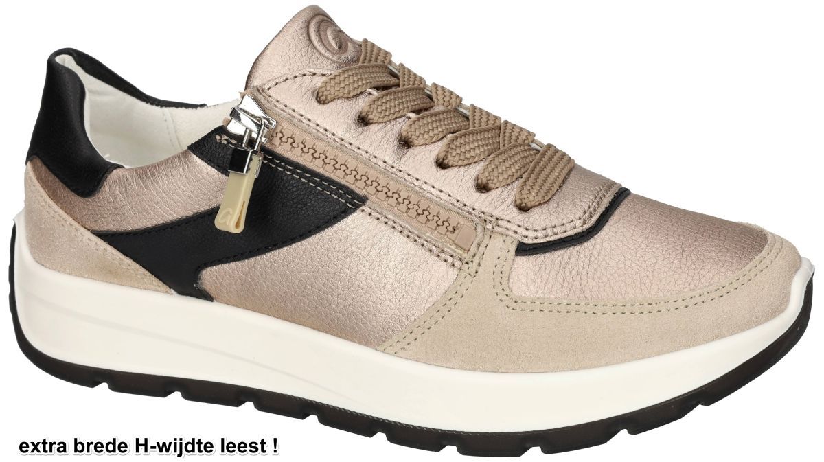 Ara artikel/model 12-25112 New York beige/brons/zwart metallic damesschoenen meerbepaald sneakers of sportieve veterschoenen uit de nieuw lente/zomer 2025 collectie van het Duitse schoenenmerk ARA. Het Ara "New York" model is een damessneaker die comfort en stijl combineert, ontworpen door het Duitse schoenenmerk Ara. Deze sneaker is onderdeel van de Fusion4-collectie, die bekendstaat om innovatieve technologieën die bijdragen aan een optimale pasvorm en draagcomfort. Deze Ara New York is uitgevoerd combinatie van hoogwaardige materialen zoals brons metallic, zandkleurig beige nubuck en zwart glad leder, wat zorgt voor een ademend en flexibel ontwerp. Binnenvoering is een zachte textielvoering die bijdraagt aan een aangenaam draaggevoel, de sluiting bestaat uit een gemakkelijke rits + vetersluiting voor een verstelbare en veilige pasvorm.? Een flexibele en schokabsorberende zool zorgt voor een goede demping tijdens het lopen. Dankzij het veelzijdige ontwerp kan de Ara "New York" sneaker gemakkelijk worden gecombineerd met zowel casual als sportieve outfits. Of je nu kiest voor een jeans, rok of zomerjurk, deze sneaker voegt een moderne en comfortabele touch toe aan je look. De nieuwe ARA schoenencollectie vindt men in onze schoenenwinkel regio Aalst, Ninove, Geraardsbergen, Zottegem of kan men online bestellen op onze website.