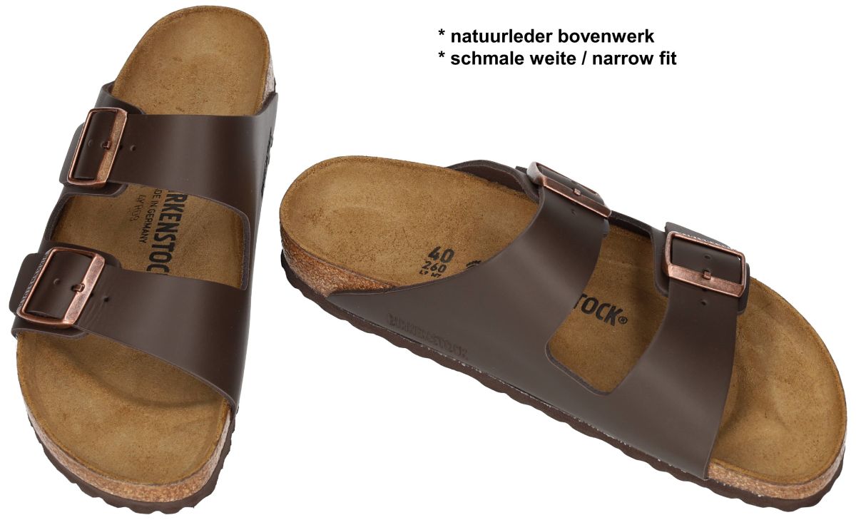 Birkenstock 1029107 Arizona Thyme natural leather schmale weite/narrow fit: Verwen uw voeten met de ongeëvenaarde ondersteuning van de Birkenstock Arizona BS slippers uitgevoerd in olijfgroen (militair-groen) echt leder. Deze Birkenstock Arizona Dark Brown Natural Leather met artikelnummer 0051103 met de smalle leest voor normaal en gemiddelde voeten bieden niet alleen een esthetisch genoegen dankzij het hoogwaardige natuurlijke lederen bovenwerk, maar ook een orthopedisch ontworpen voetbed dat de natuurlijke houding van uw voet benadrukt en ondersteunt. Het kenmerkende Birkenstock voetbed is met precisie ontworpen om de druk gelijkmatig over de voetzool te verdelen en biedt een anatomisch correcte ondersteuning die essentieel is voor een gezonde voet. Dit wordt bereikt door een diepe hielkom, een opstaande rand bij de tenen en een contour in het midden van de voet die samenwerken om de natuurlijke functie van de voet te ondersteunen en te bevorderen. Het resultaat is optimaal comfort, dag na dag. Gecombineerd met de natuurlijke kurkzool en de dempende EVA-loopzool, biedt het donker bruine natuurlijke lederen bovenwerk een stijlvolle en robuuste finish die mettertijd aan karakter wint. De verstelbare gespen van metaal zorgen voor een persoonlijke pasvorm en de subtiele Birkenstock branding rondt het ontwerp stijlvol af. Kies voor de Birkenstock Arizona BS in de Dark Brown kleur voor een investering in duurzaam comfort en tijdloze stijl. Ideaal voor de modebewuste drager die niet wil inleveren op comfort en kwaliteit. Birkenstock slippers en sandalen vindt men in onze schoenenwinkel regio Aalst, Ninove, Geraardsbergen, Liedekerkeof kan men online bestellen op onze webshop. Hebben we u maat niet op voorraad dan kunnen we die voor u bestellen van maat 35 tot 43 in de kleur die u wenst.
