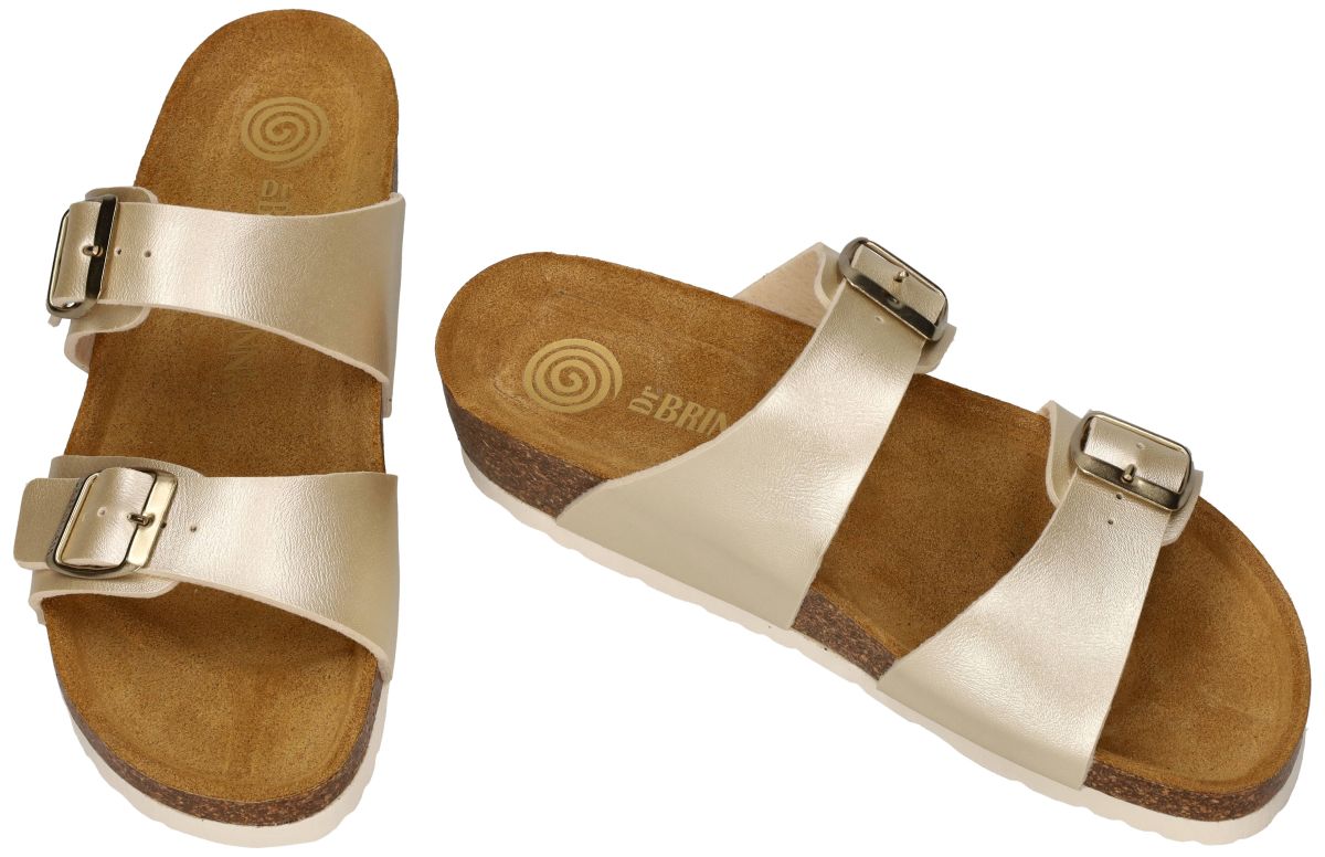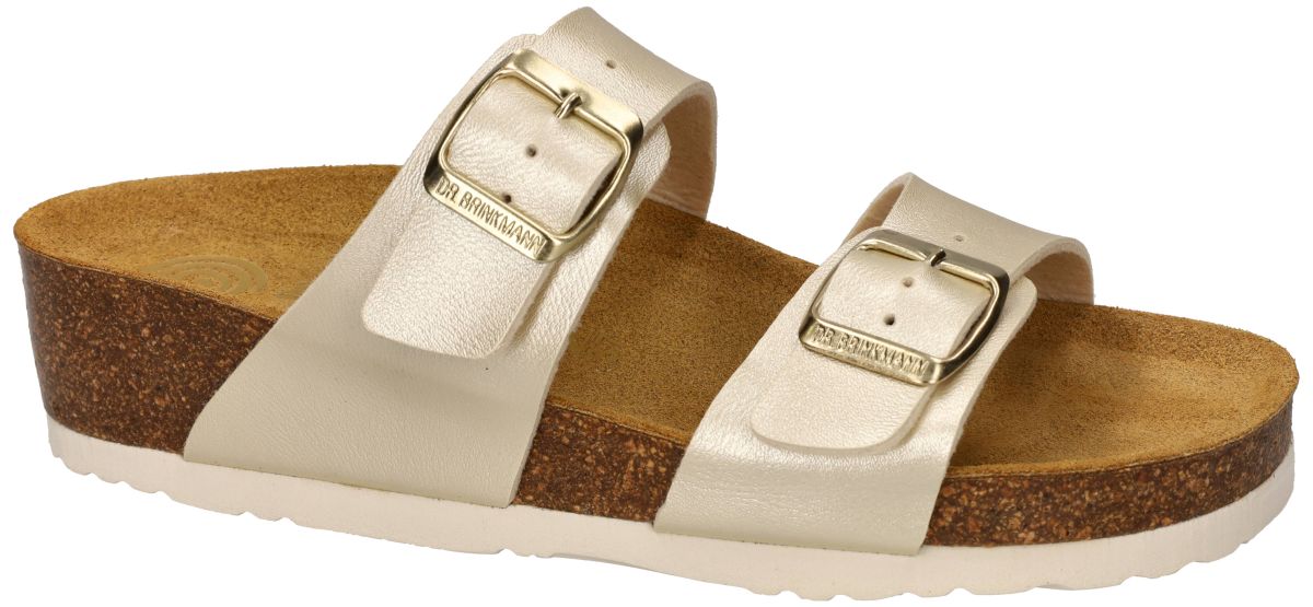 De Dr. Brinkmann DINA-2/223 goud slippers zijn de perfecte keuze voor een casual en relaxte stijl, nu verkrijgbaar in goud metallic. Het bovenwerk is vervaardigd uit vegan imitatieleer, waardoor deze slippers een verantwoorde keuze zijn voor zowel modebewuste als milieubewuste gebruikers. De Dr. Brinkmann dames slippers, model DINA-2/223 in de kleur gold, combineren stijl en comfort op een unieke manier. Het ergonomische voetbed ondersteunt de natuurlijke voetpositie, wat bijdraagt aan een gezonde houding en loopcomfort. Een extra schuimkussen zorgt voor een bijzonder zachte stap, waardoor elke wandeling een plezier wordt. Het zachte, anatomisch gevormde voetbed belooft een wolkenzachte ervaring voor je voeten, terwijl de lichte sleehak van 2 cm zorgt voor een natuurlijke houding. De verstelbare gespen bieden de flexibiliteit om de pasvorm naar wens aan te passen, en de anti-slip profielzool zorgt voor veilige en stabiele stappen, waar je dag je ook brengt. De Dr Brinkmannzool constructie bestaat uit 4 lagen: een rubber loopzool, daarboven een dikke kurk laag, daarboven een dunne PU schuimlaag en tenslotte bekleed met een lederen bovenlaag. Hierdoor loopt u met Dr Brinkmann als het ware op wolkjes ! Kies voor de Dr. Brinkmann DINA-2/223 slippers wanneer je op zoek bent naar de ideale combinatie van gemak en nonchalante elegantie, verpakt in een bewuste, vegan schoen. Dr BRINKMANN slippers, muiltjes en sandalen vindt men in onze schoenenwinkel regio Aalst, Ninove,Geraardsbergen, Zottegem, Liedekerke of kan men online bestellen op onze webshop.