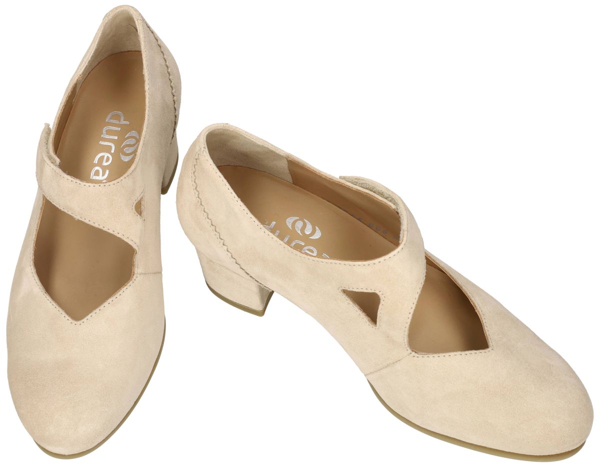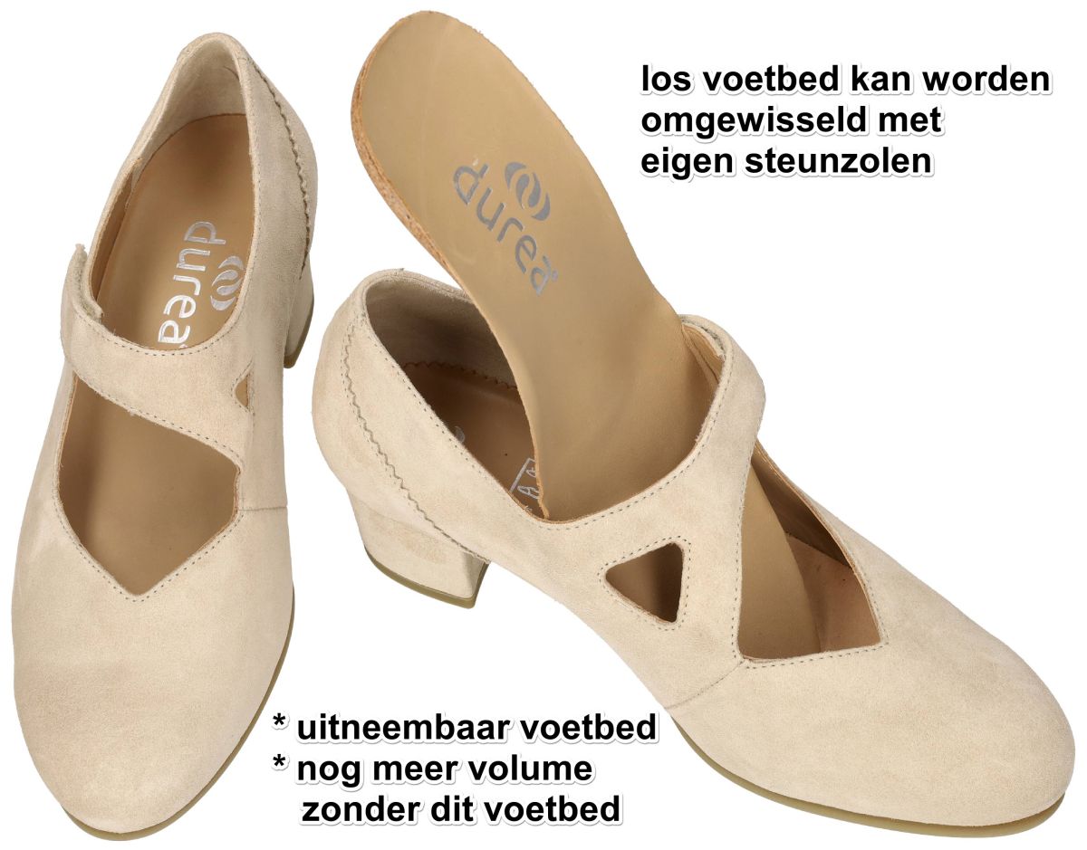 Durea damespumps 5755 008 0502 Light Taupe – super brede K-wijdte – met uitneembaar voetbed. De Durea 5755 008 0502 in Light Taupe is een elegante damespump die stijl en comfort op unieke wijze combineert. Deze pump met handige band over de wreef biedt dankzij de extra brede K-wijdte leest een perfecte pasvorm voor dames met bredere of gevoelige voeten. Het bovenwerk is uitgevoerd in de hoogste kwaliteit beige suède, dat zacht aanvoelt en tegelijk een verfijnde, zomers-neutrale uitstraling geeft. Binnenin is de schoen volledig leer gevoerd, wat zorgt voor een aangenaam voetklimaat en langdurig draagcomfort. De beklede blokhak van circa 3,5 cm biedt extra stabiliteit en een subtiele lift zonder in te boeten aan loopgemak. Een belangrijk pluspunt is het uitneembare leren voetbed, dat eenvoudig kan worden vervangen door eigen steunzolen. Wie nog meer ruimte nodig heeft, kan het voetbed zelfs weglaten voor extra volume. Dankzij deze combinatie van slimme pasvorm en orthopedisch comfort blijft Durea trouw aan zijn reputatie als Nederlands kwaliteitsmerk voor voeten die meer nodig hebben dan de reguliere standaardmodellen. Deze nette pump sluit mooi aan door de verstelbare wreefband met klittenband, die de voet stevig op zijn plaats houdt. De lichte, flexibele zool zorgt voor uitstekende grip en demping bij elke stap. Deze vanille beige suède Durea-pump past moeiteloos bij lichte zomeroutfits, linnen rokken of een nette pantalon en vormt zo de ideale balans tussen elegantie en dagelijks comfort.