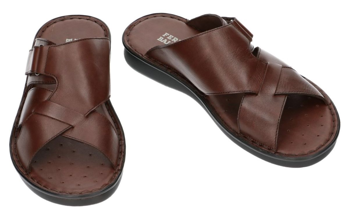 FERNANDO BALDASSARRI artikel/model B-753 vitello marrone zijn kastanje bruine handgemaakte luxe herenschoenen lederen pantoffel slippers of muil van de Italiaanse slipper en pantoffel specialist Fernando Baldassarri. Deze Fernando Baldassarri heren slipper of slof is zorgvuldig met de hand vervaardigd uit het fijnste leder en is open aan de tenen met een verstelbare klittenbandsluiting over de wreef. Luxueuze pantoffel voor mannen die enkel het beste willen. De meest uitgebreide collectie Fernando Baldassarri lederen pantoffels vindt u bij Karo in de schoenenwinkel regio Aalst, Ninove, Geraardsbergen of u kan ook online bestellen op onze webshop.