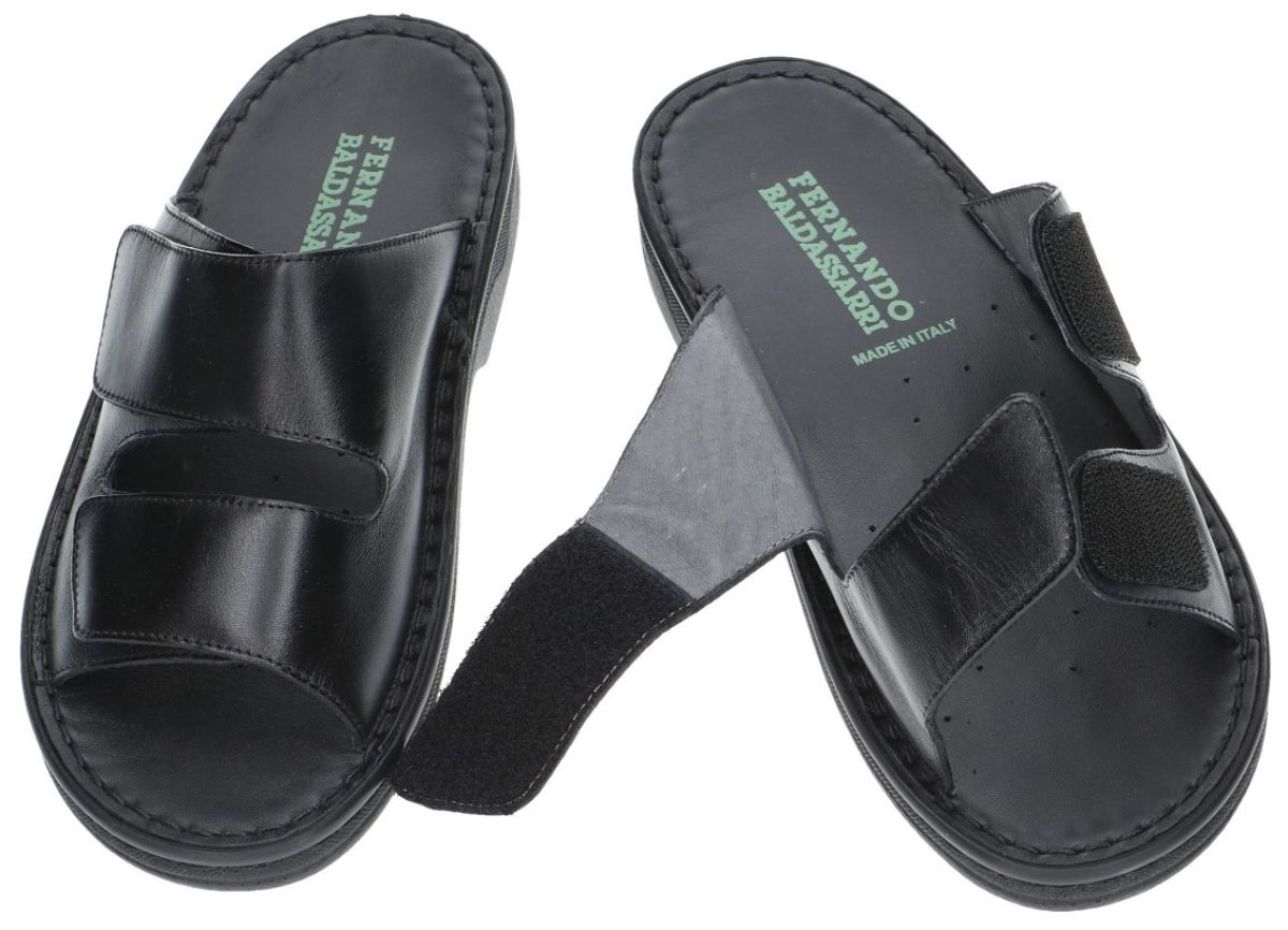 Fernando Baldassarri artikel/model 23391 Nevada Nero zijn zwarte handgemaakte herenschoenen lederen pantoffel slippers of muil sloffen van Fernando Baldassarri. Deze Fernando Baldassarri heren slipper of slof kan met de twee brede klittenband sluitingen volledig worden open gemaakten perfect aangepast worden aan elk type voet. Zowel de binnenzool als het bovenwerk is gepolsterd zodat deze herenslipper aangenaam zacht aanvoeld als een tweede huid. De beste mannen pantoffel, slof of slipper voor wie enkel de hoogste kwaliteit aan zijn voeten wil. De meest uitgebreide collectie Fernando Baldassarri lederen pantoffels vindt u bij Karo in de schoenenwinkel regio Aalst, Ninove, Geraardsbergen of u kan ook online bestellen op onze webshop.