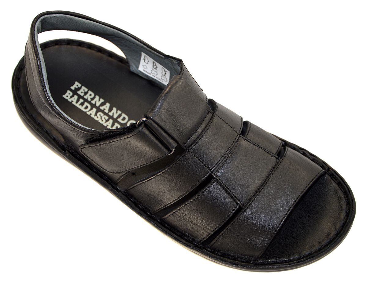 Zwarte artisanaal met de hand vervaardigde herenschoenen lederen sandaal van Fernando Baldassarri.Deze Fernando Baldassarri herensandaal is zorgvuldig met de hand vervaardigd uit het fijnste leeren is open aan de tenen met een verstelbare klittenbandsluiting over de wreef.Zowel de binnenzool als het bovenwerk is gepolsterd zodat deze herensandalen aangenaam zacht aanvoeld als een tweede huid.De meest uitgebreide collectie Fernando Baldassarri lederen slippers, pantoffels en sandalen vindt u bij Karo in de schoenenwinkel regio Aalst, Ninove, Geraardsbergen of u kan ook online bestellen op onze webshop.