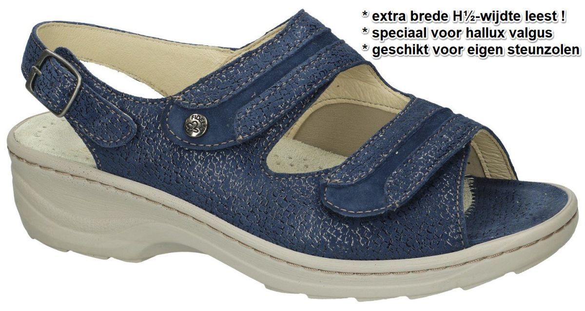 HALLUX by FIDELIO artikel/model 236024 HEDI (H) 89 Denim Float/velour zijn donkerblauwe of marineblauwe nubuck/velour damesschoenen medisch orthopedische Hallux Valgus sandalen van het Oostenrijkse schoenenmerk FIDELIO HALLUX. Deze super comfortabele Fidelio Hallux dames sandalen hebben een hak van 3 cm en een extra brede H½ wijdte leest voor brede tot zeer brede voeten. Fidelio hallux sandalen zijn voorzien van een dik uitneembare hallux mals rubber voetbed bekleed met nubuck. Deze geïntegreerde steunzool is speciaal in samenwerking met orthopedisten ontworpen om de druk op de hallux valgus te verlichten. Uiteraard is het mogelijk om dit los voetbed te vervangen door uw eigen steunzolen. Ter hoogte van de hallux valgus (grote teen) is een zacht strechleder inzetstuk voorzien ompijnlijke druk op deze plaats te voorkomen. Fidelio Hallux schoenen en sandalen vindt men in onze schoenenwinkel regio Aalst, Ninove, Geraardsbergen, Liedekerke of kan men online bestellen op onze webshop.