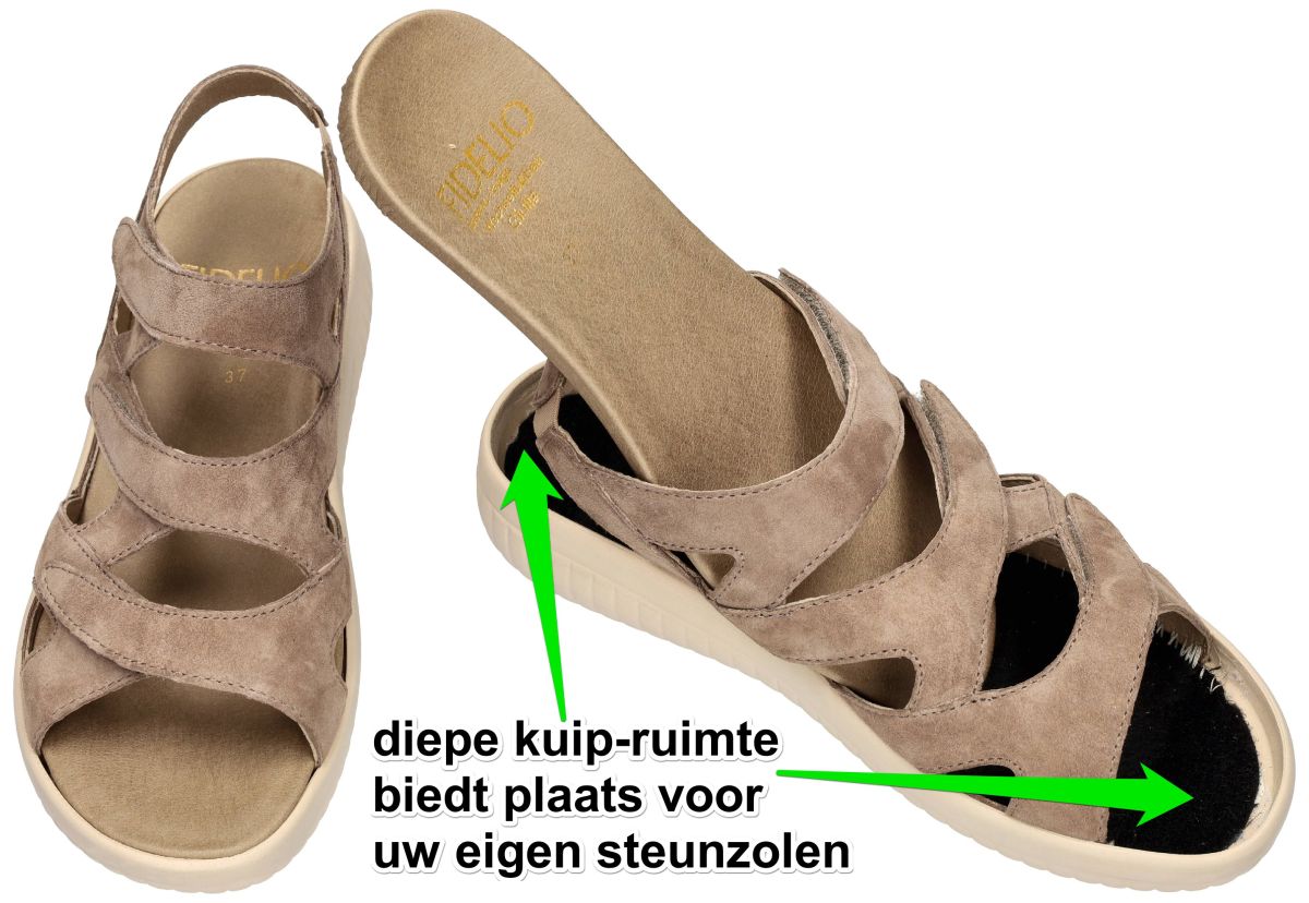 Ontdek deze ultieme combinatie van comfort en elegantie met de Fidelio Giulia G½ sandalen, model 585005, in de lichtbruine kleur Ambra Nubi. Dit Oostenrijkse kwaliteitsmerk staat bekend om zijn ergonomisch verantwoorde ontwerpen, en deze sandalen vormen daarop geen uitzondering. Perfecte pasvorm voor elke voet . Dankzij de drie verstelbare klittenbandsluitingen biedt deze sandaal een individuele pasvorm die zich aanpast aan elk type voet. De brede G½-leest is ideaal voor gemiddelde tot licht bredere voeten, waardoor je de hele dag comfortabel loopt zonder knellend gevoel. Uitneembaar voetbed voor optimaal comfort. Het los uitneembare voetbed is perfect voor wie eigen steunzolen wil gebruiken. De diepe kuip biedt voldoende ruimte voor orthopedische inlegzolen, waardoor deze sandaal een uitstekende keuze is voor wie extra ondersteuning nodig heeft. Fidelio sandalen vindt men in onze schoenenwinkel regio Aalst, Ninove, Geraardsbergen, Zottegem, Liedekerke of kan men online bestellen op onze webshop.