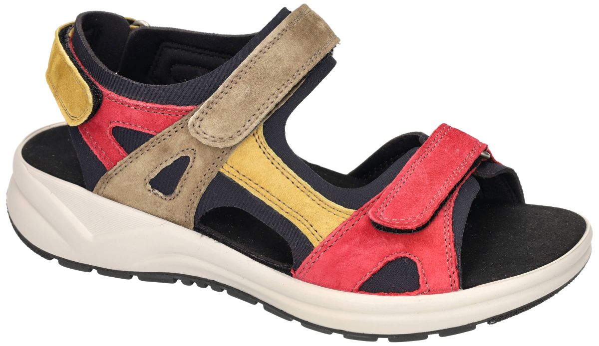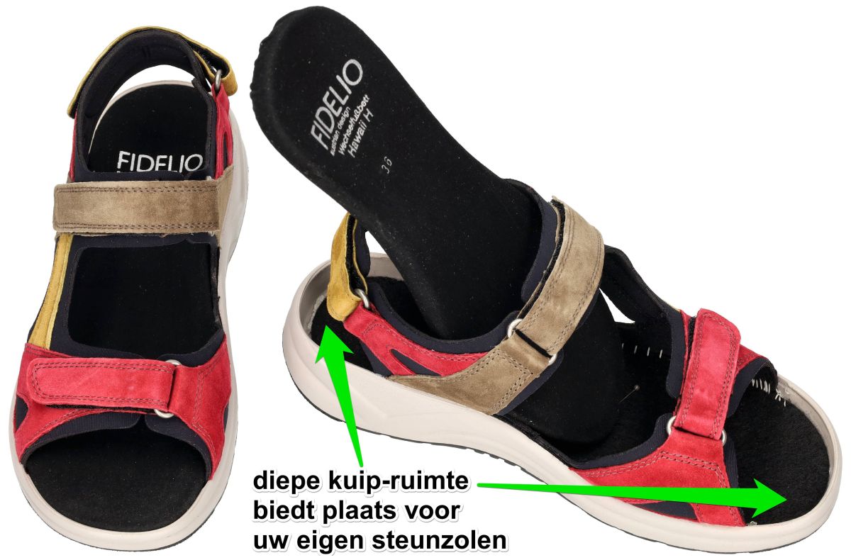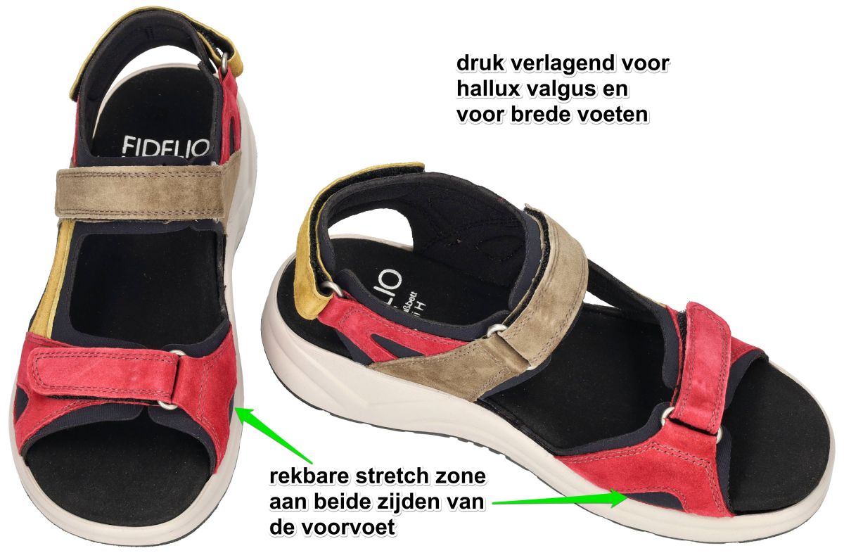 Fidelio Hallux Hawaii H 646017 – Sportieve comfortsandaal in kleurrijk nubuck design. Maak kennis met de Fidelio Hallux Hawaii H, model 646017 in de opvallende uitvoering 25 Nubi Mix – een sandaal die functioneel comfort moeiteloos combineert met een sportieve uitstraling en stijlvolle flair. Deze Oostenrijkse kwaliteitssandaal is speciaal ontwikkeld voor gevoelige of bredere voeten en is dankzij zijn ontwerp en technologie de perfecte keuze voor elke actieve dag. De uitvoering in olijfgroen, donkerrood, mosterdgeel en zwart zorgt niet alleen voor een modieuze uitstraling, maar geeft deze comfort sandaal ook een moderne en vrouwelijke touch. Perfect om te combineren met casual of sportieve outfits tijdens warme dagen. Dankzij het sportieve design met stevige klittenbandsluitingen, de lichtgewicht antislipzool en het zachte voetbed is deze sandaal jouw ideale metgezel voor uitdagende citytrips, lange wandelingen of een actieve vakantie. De rekbare stretchzones aan beide zijden van de voorvoet zorgen voor een drukvrije pasvorm – ideaal voor mensen met hallux valgus of bredere voeten. De luchtkussenzool en de gestrobelde maakwijze zorgen daarbij voor een extra zachte stap en uitstekende ondersteuning. De Soft-kurkinlegzool is uitneembaar en de diepe kuipvorm biedt voldoende ruimte voor je eigen orthopedische steunzolen, zonder in te leveren op comfort of stabiliteit. De Fidelio Hallux Hawaii H 646017 Nubi Mix is een modieuze, sportieve comfortsandaal die je voeten zelfs tijdens de meest intensieve dagen ontspanning en ondersteuning biedt. Perfect voor actieve vrouwen die geen concessies willen doen aan stijl én comfort. Fidelio Hallux sandalen en slippers vindt men in onze schoenenwinkel regio Aalst, Ninove, Geraardsbergen, Liedekerke of kan men online bestellen op onze webshop.
