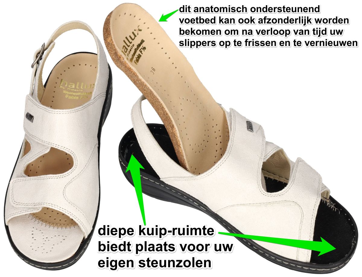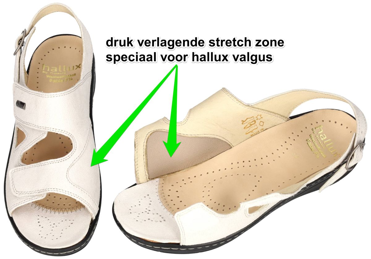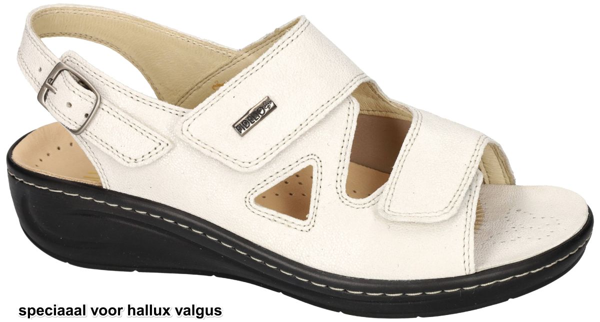 HALLUX by FIDELIO artikel/model 434134 HALLUX FABIA F½ 51 Bianco Miss zijn ecru witte met fijne schuim-print damesschoenen medisch orthopedische hallux valgus sandalen van het Oostenrijkse schoenenmerk FIDELIO. Deze super comfortabele Fidelio Hallux sandalen hebben een sleehak van 3 cm en een F1/2 wijdte leest voor fijne tot gemiddelde voeten (F tot G). Ter hoogte van de hallux valgus (grote teen) is een zacht strechleder inzetstuk voorzien ompijnlijke druk op deze plaats te voorkomen. Deze anatomisch gevormd geïntegreerde steunzool is speciaal in samenwerking met orthopedisten ontworpen om de druk op de hallux valgus te verlichten. Dit speciale kurk met leder beklede voetbed kan ook apart worden aangeschaft om uw sandalen te vernieuwen en op te frissen. Uiteraard is het mogelijk om dit los voetbed te vervangen door uw eigen steunzolen. Fidelio Hallux sandalen en slippers vindt men in onze schoenenwinkel regio Aalst, Ninove, Geraardsbergen, Liedekerke, Zottegem of kan men online bestellen op onze webshop.