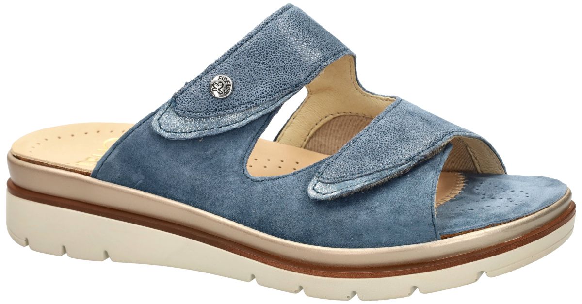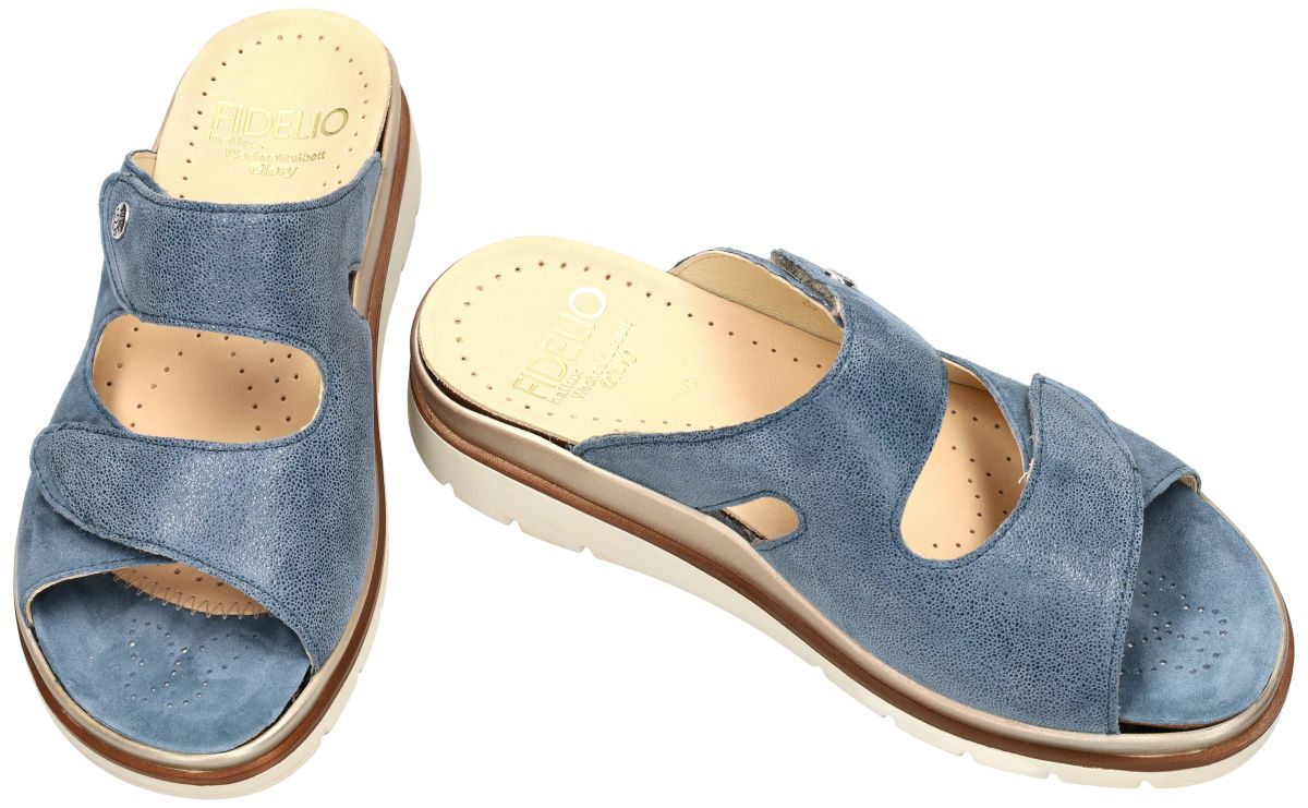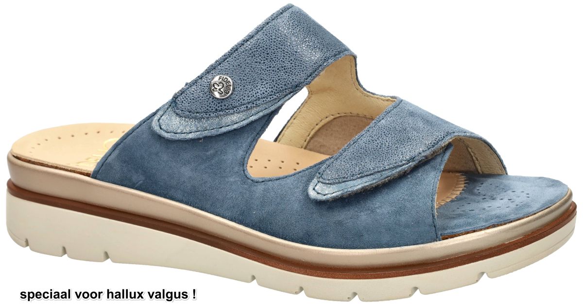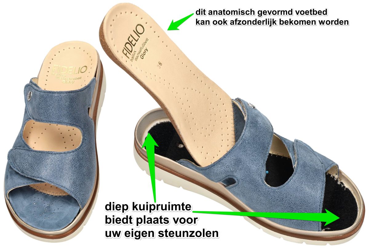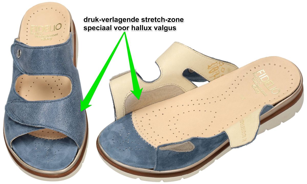 HALLUX by FIDELIO artikel/model 595020 HALLUX GLORY (G) 79 Jeans Kombi zijn blauwe nubuck/velour damesschoenen medisch orthopedische Hallux Valgus slippers of muil pantoffels van het Oostenrijkse schoenenmerk FIDELIO HALLUX. Deze super comfortabele Fidelio Hallux damesslipper heeft een gelaagde plateauzool met 2 cm reële hielhoogte en een brede G½ wijdte leest voor de wat bredere en zware voeten. Fidelio slippers zijn voorzien van een dik uitneembare hallux steunzool vervaardigd van schokabsorberend kurk en met velour bekleed. Deze anatomisch gevormd geïntegreerde steunzool is speciaal in samenwerking met orthopedisten ontworpen om de druk op de hallux valgus te verlichten. Uiteraard is het mogelijk om dit los voetbed te vervangen door uw eigen steunzolen. Ter hoogte van de hallux valgus (grote teen) is een zacht strechleder inzetstuk voorzien ompijnlijke druk op deze plaats te voorkomen. Fidelio Hallux schoenen en slippers vindt men in onze schoenenwinkel regio Aalst, Ninove, Geraardsbergen, Liedekerke of kan men online bestellen op onze webshop.