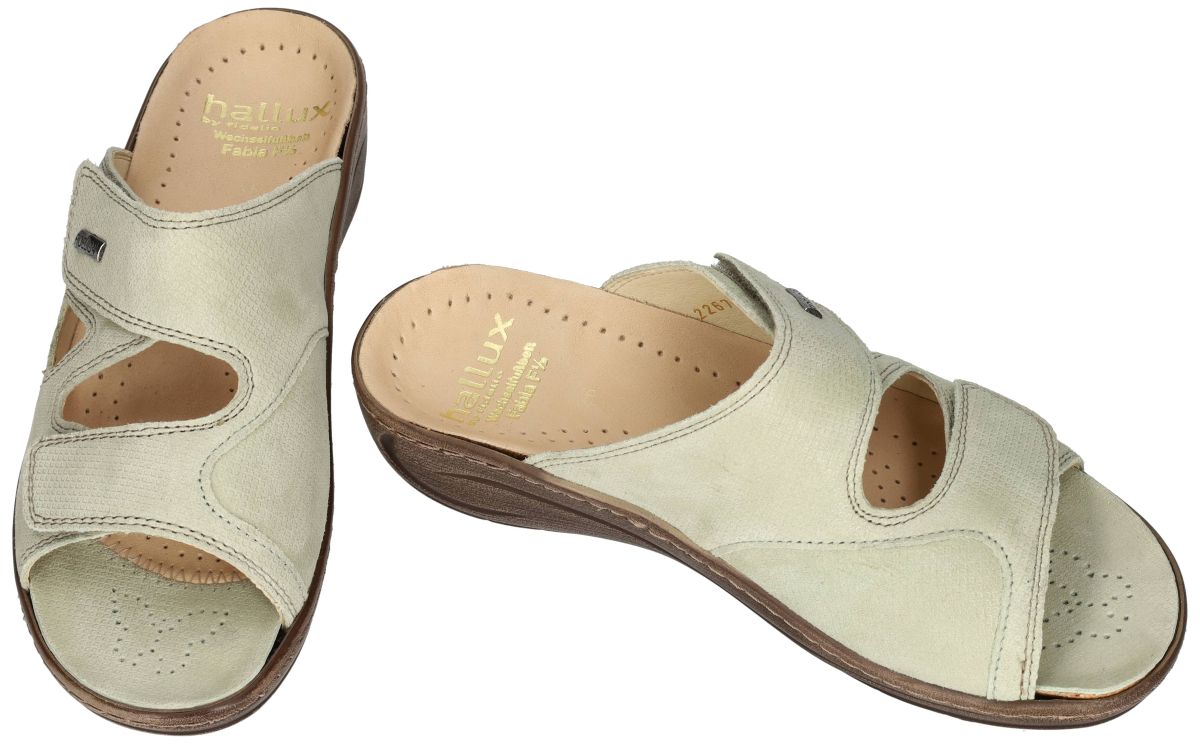 HALLUX by FIDELIO artikel/model 434133 HALLUX FABIA F½ 55 Agile Havanna zijn licht groene of pastelgroen nubuck met een fijne wafel-patroon print damesschoenen medisch orthopedische Hallux Valgus slippers of muil pantoffels van het Oostenrijkse schoenenmerk FIDELIO HALLUX. Deze super comfortabele Fidelio Hallux damesslipper heeft hak 3 cm en een F1/2 wijdte leest voor normaal tot de wat bredere voeten (F tot G). Fidelio slippers zijn voorzien van een dik uitneembare hallux steunzool vervaardigd van schokabsorberend kurk en met leder bekleed. Deze anatomisch gevormd geïntegreerde steunzool is speciaal in samenwerking met orthopedisten ontworpen om de druk op de hallux valgus te verlichten. Dit speciale voetbed kan ook apart worden aangeschaft om uw slippers eens te vernieuwen en op te frissen. Uiteraard is het mogelijk om dit los voetbed te vervangen door uw eigen steunzolen. Ter hoogte van de hallux valgus (grote teen) is een zachte drukverlagende strechleder zone ingebouwd om pijnlijke druk op deze plaats te voorkomen. Fidelio Hallux schoenen en slippers vindt men in onze schoenenwinkel regio Aalst, Ninove, Geraardsbergen, Liedekerke of kan men online bestellen op onze webshop.