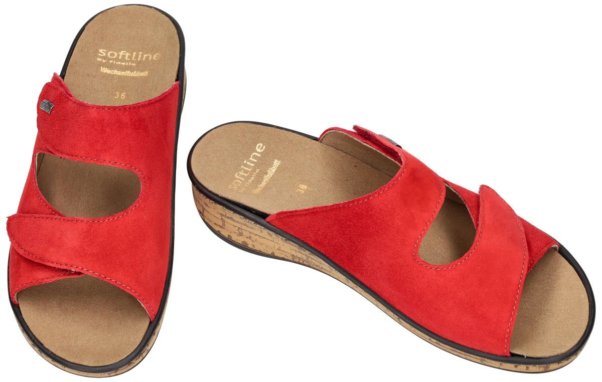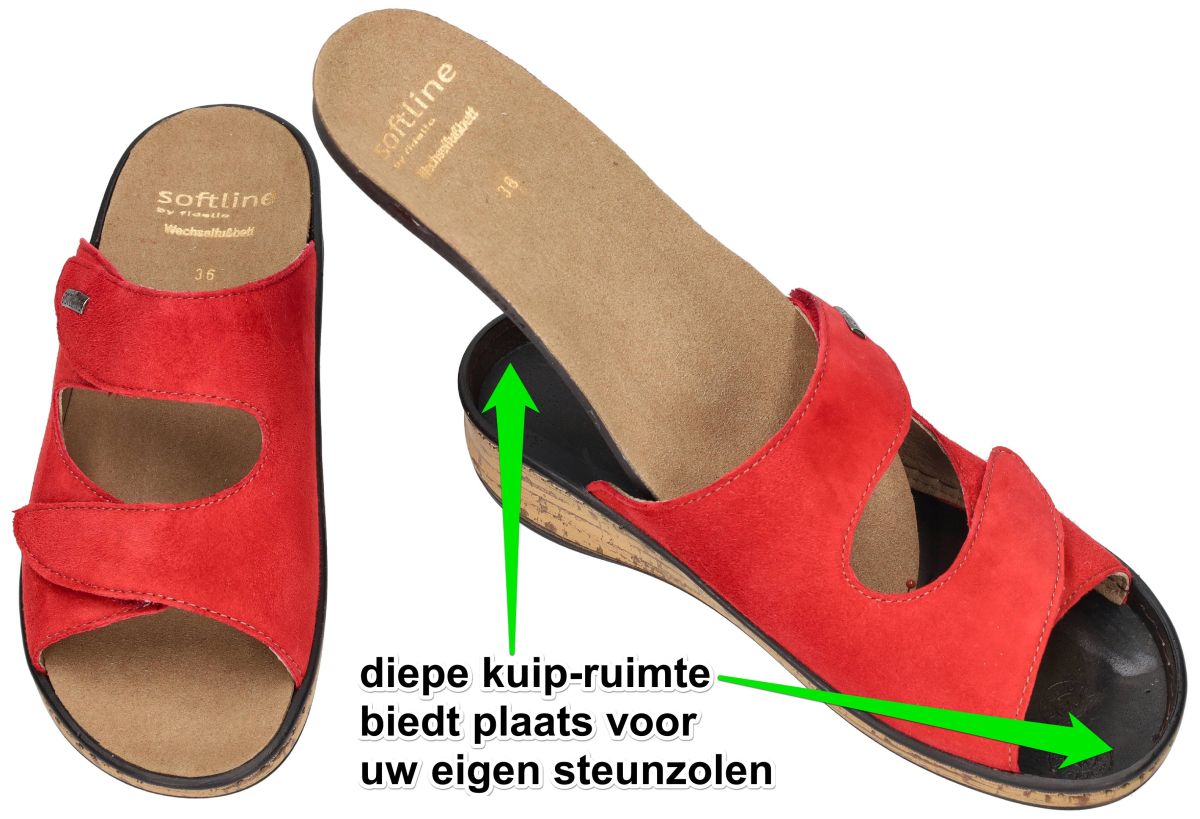 Ontdek ultiem draagcomfort met deze Fidelio Soft-Line GERDA 245012 in rood nubuck, een hoogwaardige comfort damesslipper uit de nieuwe lente/zomercollectie van het Oostenrijkse kwaliteitsmerk Fidelio. Deze slipper combineert orthopedisch verantwoord comfort met een tijdloos en verzorgd design. De upper is uitgevoerd in zacht fel rood nubuckleder, wat zorgt voor een fluweelachtige uitstraling en een aangenaam soepel gevoel rond de voet. De subtiele stiknaden en de verfijnde afwerking benadrukken de kwaliteit waarvoor Fidelio gekend staat. De warme kurklook in de sleehak geeft het model bovendien een natuurlijke, zomerse toets, terwijl de zwarte loopzool zorgt voor een mooi contrast en extra duurzaamheid. Hoogwaardig comfort – Soft-Line technologie: Dit model behoort tot de Soft-Line collectie van Fidelio en is speciaal ontwikkeld voor dames die geen compromissen willen sluiten tussen comfort en stijl. Uitneembaar, extra dik latex voetbed, bekleed met leder – schokdempend, ondersteunend en heerlijk zacht bij elke stap. Ideaal voor wie eigen orthopedische steunzolen wenst te gebruiken. Lederen binnenbekleding voor een ademend en huidvriendelijk draaggevoel. G-wijdte leest – comfortabel geschikt voor de iets bredere voet. Twee verstelbare klittenbandsluitingen boven de wreef voor een perfecte individuele pasvorm. Subtiele sleehak met 3 cm hielverhoging, die de voet licht ondersteunt en zorgt voor een natuurlijke, ontspannen houding. Op basis van de afbeeldingen valt ook de ergonomisch gevormde leest op met een licht opstaande rand rond het voetbed, wat extra stabiliteit biedt tijdens het stappen. De open teenpartij zorgt voor ventilatie op warme dagen, terwijl de brede banden de voet mooi omsluiten zonder drukpunten te creëren. Met de Fidelio GERDA kiest u voor hoog comfort, doordachte ondersteuning en Oostenrijkse kwaliteit in een stijlvolle rode uitvoering. Perfect voor dagelijks gebruik, thuis of onderweg – een betrouwbare comfortslipper waarop u de hele dag kan rekenen. Fidelio Hallux schoenen en slippers vindt men in onze schoenenwinkel regio Aalst, Ninove, Geraardsbergen, Liedekerke, Zottegem of kan men online bestellen op onze webshop.