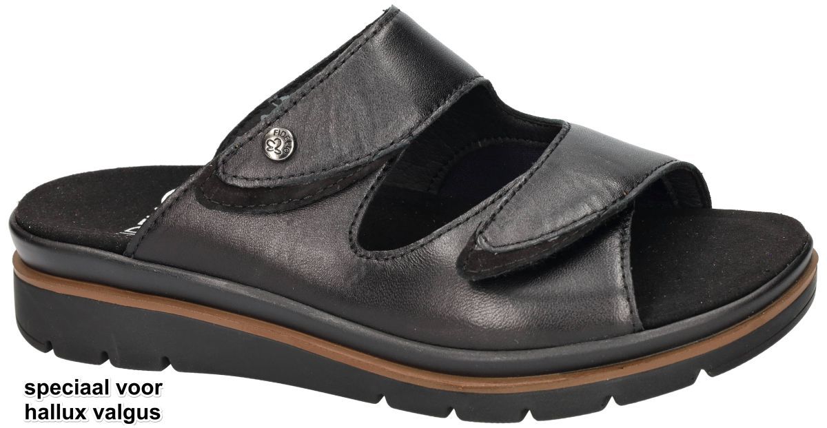 HALLUX by FIDELIO artikel/model 595020 HALLUX GLORY (G) 00 schwarz nappa zijn zwart gladlederen damesschoenen medisch orthopedische Hallux Valgus slippers of muil pantoffels van het Oostenrijkse schoenenmerk FIDELIO HALLUX. Deze super comfortabele Fidelio Hallux damesslipper heeft een gelaagde plateauzool met 2 cm reële hielhoogte en een brede G½ wijdte leest voor de wat bredere en zware voeten. Fidelio slippers zijn voorzien van een dik uitneembare hallux steunzool vervaardigd van schokabsorberend kurk en met velour bekleed. Deze anatomisch gevormd geïntegreerde steunzool is speciaal in samenwerking met orthopedisten ontworpen om de druk op de hallux valgus te verlichten. Uiteraard is het mogelijk om dit los voetbed te vervangen door uw eigen steunzolen. Ter hoogte van de hallux valgus (grote teen) is een zacht strechleder inzetstuk voorzien ompijnlijke druk op deze plaats te voorkomen. Fidelio Hallux schoenen en slippers vindt men in onze schoenenwinkel regio Aalst, Ninove, Geraardsbergen, Liedekerke of kan men online bestellen op onze webshop.