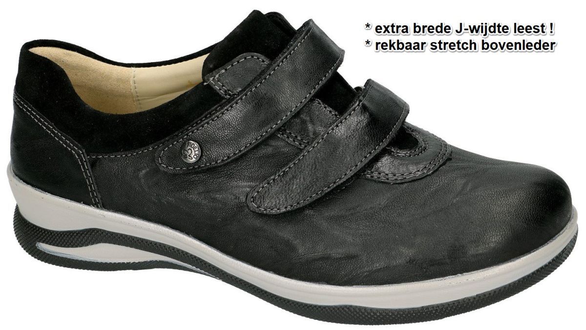 Deze Fidelio artikel 387102 Multistretch Jaley J schoenen, in uitvoering 80 Schwarz Rocky, zijn orthopedische comfortschoenen van het Oostenrijkse merk Fidelio. Deze schoenen zijn ontworpen voor vrouwen met gevoelige voeten, waaronder mensen met aandoeningen zoals hallux valgus (knobbels), hamertenen en andere voetafwijkingen. De schoenen hebben een naadloze stretch leren bovenzijde die zich aanpast aan de vorm van de voet, waardoor drukpunten worden verminderd. Dit maakt ze bijzonder geschikt voor mensen met diabetes of reumatoïde artritis. De schoenen hebben een extra brede J-wijdte, wat zorgt voor voldoende ruimte voor bredere voeten. Daarnaast hebben ze een uitneembaar voetbed, zodat de drager indien nodig eigen steunzolen kan gebruiken. Het stretchinzetstuk aan de voorkant zorgt voor pijnverlichting en een comfortabele wandelervaring, terwijl de zachte, gewatteerde constructie de voeten ondersteunt zonder druk uit te oefenen. Bovendien zijn de schoenen voorzien van een lichtgewicht en flexibele zool die de natuurlijke voetbeweging ondersteunt, waardoor de belasting op rug en gewrichten wordt verminderd?. Hoogcomfortschoen voor dames met wat bredere en volumineuze voeten met toch jonge en sportieve sneaker looks. Fidelio Hallux en multistretch schoenen vindt men in onze schoenenwinkel regio Aalst, Ninove, Geraardsbergen, Zottegem of kan men online bestellen via onze webshop.