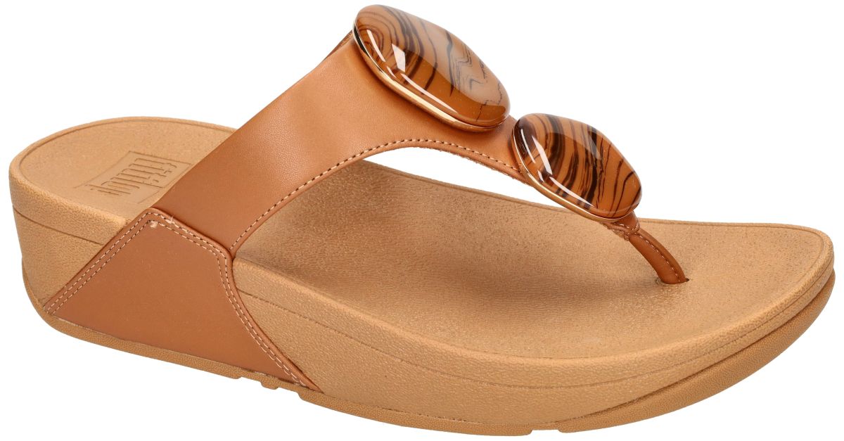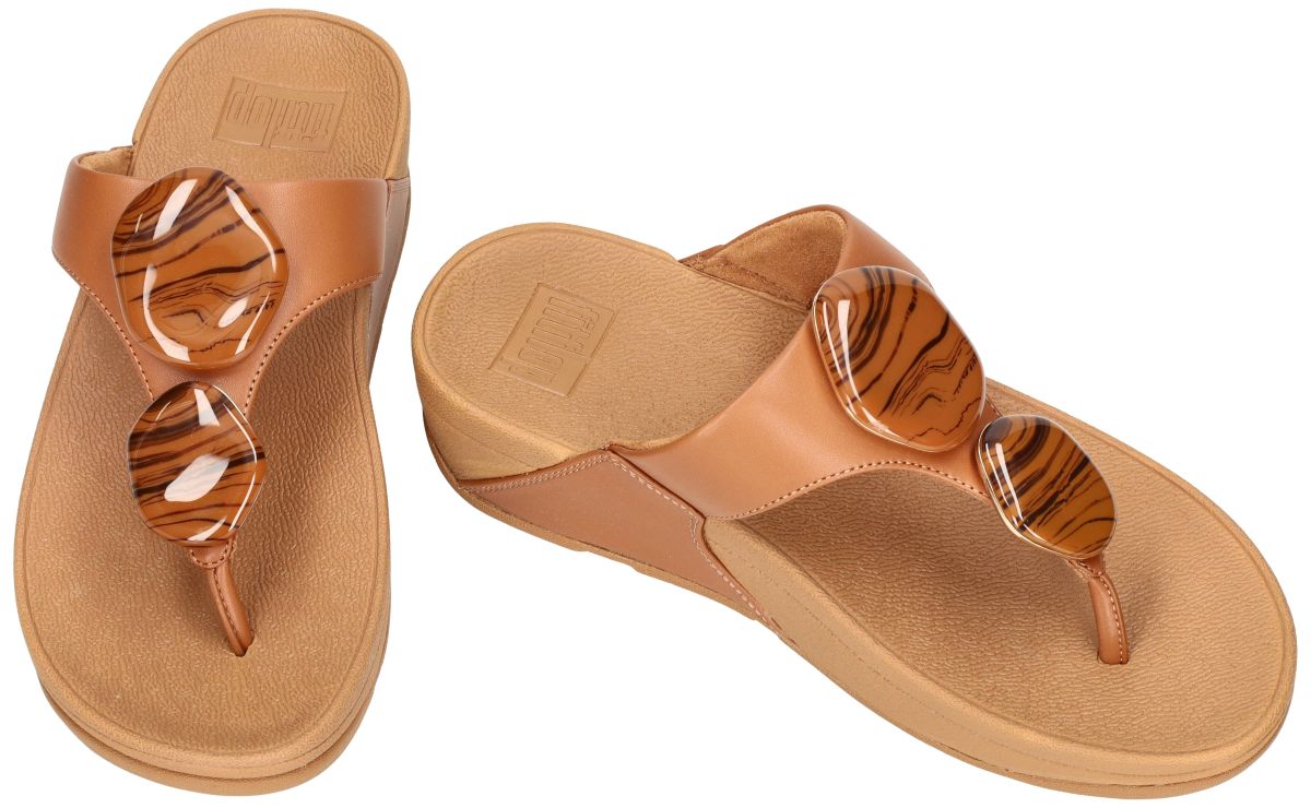 Deze FitFlop LULU Marbled-Stone Toe-Post sandalen in de uitvoering deep tan combineren minimalistische elegantie met geavanceerd comfort. De driehoekige upper in caramelbruin gladleder is verfijnd afgewerkt met decoratieve marmerlook stenen, wat deze teenslipper een luxueuze en zomerse uitstraling geeft. Dankzij de innovatieve Microwobbleboard technologie geniet u van uitstekende schokabsorptie, drukverdeling en ondersteuning tijdens het stappen. De zool is bovendien ultralicht, wat zorgt voor een bijzonder aangenaam en moeiteloos loopgevoel, ideaal voor lange zomerdagen. Deze FitFlop teenslippers zijn perfect voor dames die comfort en stijl willen combineren, zowel bij casual outfits als bij een meer geklede zomerlook. Fitflop teenslippers vindt men in onze schoenenwinkel regio Aalst, Ninove, Geraardsbergen, Liedekerke, Zottegem of kan men online bestellen op onze webshop.