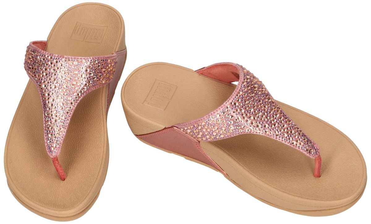 Deze elegante FitFlop teenslippers uit de lijn Lulu Crystal-Mix Metallic Toe-Post Sandals combineren opvallende glitter met het bekende, ergonomische comfort van FitFlop. De uitvoering Rust Rose Metallic met artikelnummer A4L-D60 is een stijlvolle, schitterende variant die perfect past bij zowel zomerse als meer geklede looks. Het bovenwerk is vervaardigd uit Crystal-Mix op basis van cotton/PET, wat zorgt voor een subtiele metallic schittering met een zachte, lichte structuur. De rose Rust Rose kleur oogt chic en tijdloos, terwijl de soepel afgewerkte teenpost en de brede band zorgen voor een aangenaam draaggevoel zonder schuren of drukpunten. Bewezen comfort dankzij de FitFlop-zool. Zoals alle modellen uit de Lulu-lijn is ook deze versie uitgerust met de iconische Microwobbleboard™-zool. Deze door biomechanici ontwikkelde zool staat bekend om haar: uitstekende schokdemping evenwichtige drukverdeling over de hele voet ondersteuning van de natuurlijke afrol ontlasting van hielen, knieën en onderrug. Veel draagsters geven aan dat FitFlop-slippers uitzonderlijk comfortabel zijn, zelfs bij lange wandelingen, citytrips of volledige dagen rechtstaan. De combinatie van lichtgewicht materialen en stabiele ondersteuning maakt FitFlop tot een favoriet bij vrouwen die stijl en welzijn willen combineren. Verschillende FitFlop-modellen dragen bovendien het APMA Seal of Acceptance, wat de positieve impact op voetcomfort bevestigt. Wanneer en hoe draag je deze Metallic Rust Rose variant? De Lulu Shimmerglitz Toe-Post Sandals Deep Ocean zijn bijzonder veelzijdig: Mooi onder een zomerjurk, maxi-rok of tuniek. Elegant bij een linnen broek, jeans of capri. Ideaal voor vakantie, citytrips, avondwandelingen of dagelijks gebruik. Deze FitFlop teenslipper is de perfecte keuze voor vrouwen die op zoek zijn naar een stijlvolle slipper met een iets diepere kleurtoon, een verfijnde shimmerlook en het vertrouwde FitFlop-comfort. Een tijdloze zomerse must-have waarin je moeiteloos de hele dag blijft stappen. Fitflop slippers, teenslippers en sandalen vindt men in onze schoenenwinkel regio Aalst, Ninove, Geraardsbergen, Zottegem, Liedekerke of kan men online shoppen op onze webshop.
