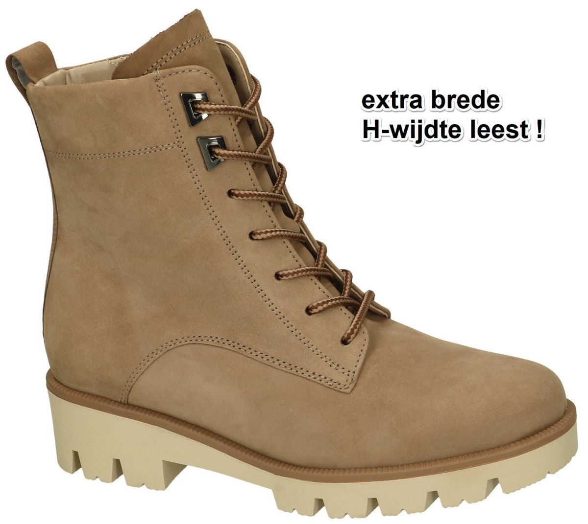 GABOR artikel/model 92.776.40 soft nubuk muskat (flaush) wechselfußbett zijn nubuk taupe damesschoenen veter enkellaarzen of bikerboots - battleboots of hoge bottines met extra brede H-wijdte leest uit de nieuwe herfst/winter collectie 2022 van het Duitse schoenenmerk GABOR. Deze gedurfde stoere Gabor dameslaarzen in taupe halfhoge laarzen of veterboots staan op een dikke ecru/beige profielzool met blokhak van 2 cm en hebben een extra brede H-wijdte leest voor brede tot zeer brede voeten. Gabor Comfort Optifit met een los uitneembaar voetbed dat indien nodig kan vervangen worden door eigen steunzolen of om meer plaats te creëren voor voeten met bv hoge wreef. Gabor boots vindt men in onze schoenenwinkel regio Aalst, Ninove, Geraardsbergenof kan men online bestellen op onze webshop. OOK ANDERE MATEN KUNNEN BESTELD WORDEN !van maat 35 tot 44 halve maten inclusief