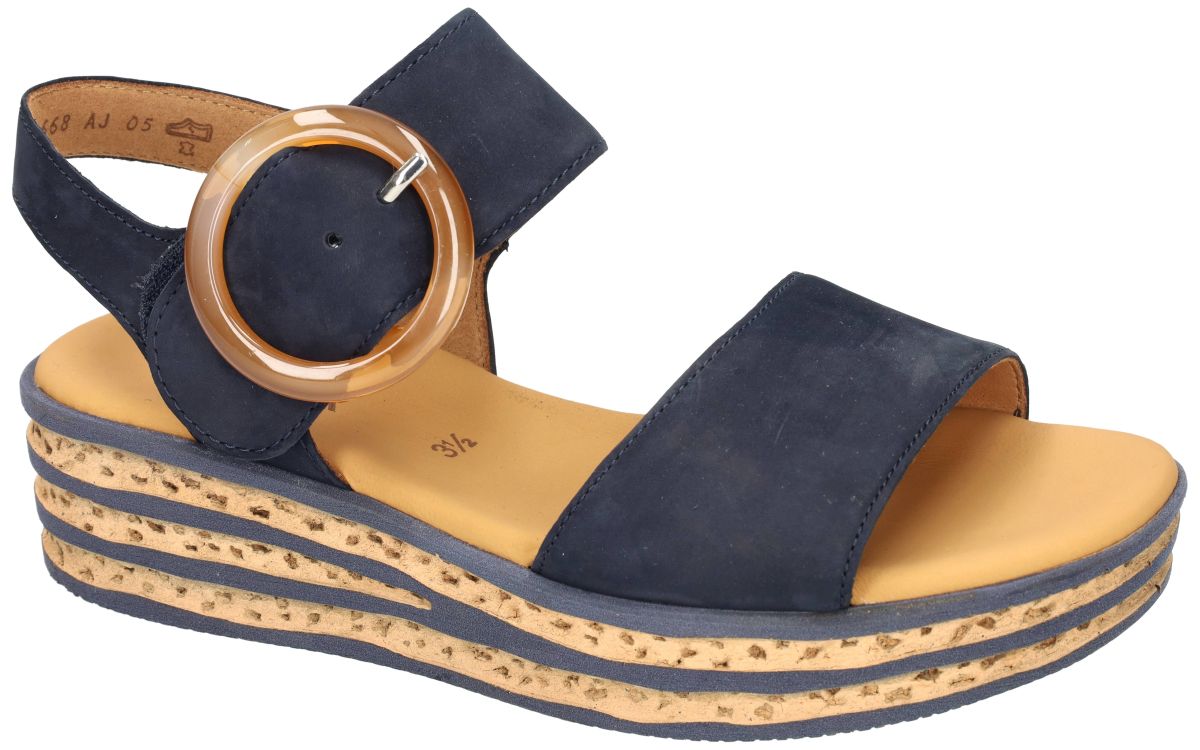 Gabor 84.550.16 Sandalen – Stijlvolle Plateauzool Sandalen in Soft Nubuk marine. De Gabor 84.550.16 dames sandalen in soft nubuck marine zijn prachtig! Deze sandalen combineren uitmuntend comfort met een opvallend hippe uitstraling. De marineblauwe suède upper straalt luxe uit, terwijl de brede klittenbandsluiting aan de enkel zorgt voor een perfecte pasvorm en eenvoudig aan- en uittrekken. De grote ringvormige gesp is decoratief en voegt een chique detail toe. Comfort & Pasvorm : Gabor "Best Fitting" F-wijdte leest – voor fijne tot gemiddelde voeten maar toch met meer ruimte voor de bal van de voet voor extra comfort . Met leder bekleed voetbed – zacht en ademend voor langdurig draagplezier . Brede klittenbandsluiting – verstelbaar voor een gepersonaliseerde pasvorm . Uitzonderlijk licht gewicht – ideaal voor dagelijks gebruik zonder vermoeide voeten. Unieke Plateauzool met Stijlvolle Details . Dikke plateauzool van 2 cm tot 4 cm – subtiele verhoging voor een vrouwelijke uitstraling. Originele zool met uitgefreesde lijnen in kurk-look – een speels en modern designelement . Uitmuntende grip en flexibiliteit – perfect voor comfort en stabiliteit bij elke stap. Elegant & Trendy: De Gabor 64.550.16 sandalen laten elke vrouw stralen met elegantie en stijl. Dankzij de maritiem blauwe kleur en verfijnde details passen ze perfect bij zowel casual als chique zomerse outfits. Draag ze met een lichte jurk, een stijlvolle rok of een jeans voor een eigentijdse look. Kies voor Gabor's hoogwaardige afwerking, ongeëvenaard comfort en modieuze uitstraling met deze trendy plateauzool sandalen! Gabor sandalen vindt men in onze schoenenwinkel regio Aalst, Ninove, Geraardsbergen of kan men online bestellen op onze webshop. OOK ANDERE MATEN KUNNEN BESTELD WORDEN ! van maat 35 tot 44 halve maten inclusief!