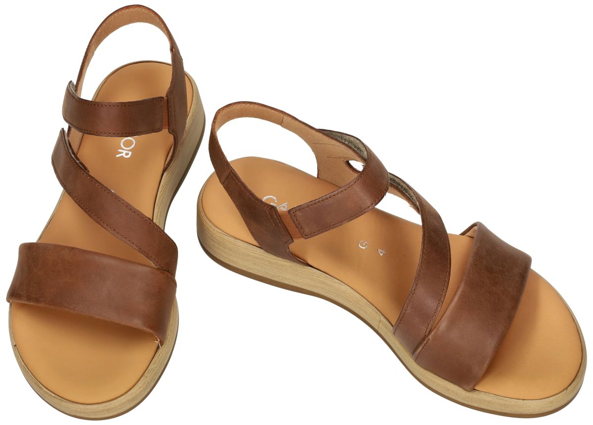 Ontdek het summum van elegantie en gemak met deze nieuwste sandalen van Gabor model 82.733.54 Vacchetta peanut. Deze verfijnde damessandalen zijn uitgevoerd in eenvoudig maar degelijk cognac bruin leder en staan garant voor een stijlvolle en aanpasbare uitstraling die bij elke gelegenheid past. Gemaakt met aandacht voor draagcomfort, zorgen de hoogwaardige materialen voor een zachte en comfortabele ervaring bij elke stap. De aanpasbare klittenbandsluiting garandeert een stevige en persoonlijke pasvorm. Speciaal ontworpen voor de bredere voet, bieden deze sandalen een ruime G-wijdte leest, die ruimte biedt zonder in te leveren op stijl. De zool, met een subtiele hielhoogte van 2 cm, biedt optimale ondersteuning en is perfect voor vrouwen die comfort waarderen zonder te compromitteren op elegante uitstraling. Of je dag nu rustig of gevuld is, deze Gabor sandalen bieden de hele dag door een comfortabele basis. Deze tijdloze sandalen zijn een essentiële toevoeging aan elke schoenencollectie, ideaal voor het combineren met lichte zomerjurken, casual shorts of je vertrouwde jeans. Maak je klaar voor het seizoen met deze stijlvolle, praktische schoenen die zeker een favoriet zullen worden. Bestel vandaag nog en stap met Gabor 82.733.54 bruin lederen sandalen stijlvol het zomerseizoen tegemoet! Gabor sandalen vindt men in onze schoenenwinkel regio Aalst, Ninove, Geraardsbergen, Zottegem, Liedekerke of kan men online bestellen op onze webshop.