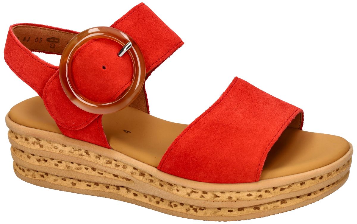 Gabor 84.550.15 Sandalen Stijlvolle Plateauzool Sandalen in Dreamvelour chilli. De Gabor 84.550.15 dames sandalen in zacht fel rood velour zijn prachtig! Deze sandalen combineren uitmuntend comfort met een opvallend hippe uitstraling. De vurige rode upper straalt luxe uit, terwijl de brede klittenbandsluiting aan de enkel zorgt voor een perfecte pasvorm en eenvoudig aan- en uittrekken. De grote ringvormige gesp is decoratief en voegt een chique detail toe. Comfort & Pasvorm : Gabor "Best Fitting" F-wijdte leest – voor fijne tot gemiddelde voeten maar toch met meer ruimte voor de bal van de voet voor extra comfort . Met leder bekleed voetbed – zacht en ademend voor langdurig draagplezier . Brede klittenbandsluiting – verstelbaar voor een gepersonaliseerde pasvorm . Uitzonderlijk licht gewicht – ideaal voor dagelijks gebruik zonder vermoeide voeten. Unieke Plateauzool met Stijlvolle Details . Dikke plateauzool van 2 cm tot 4 cm – subtiele verhoging voor een vrouwelijke uitstraling. Originele zool met uitgefreesde lijnen in kurk-look – een speels en modern designelement . Uitmuntende grip en flexibiliteit – perfect voor comfort en stabiliteit bij elke stap. Elegant & Trendy: De Gabor 64.550.15 sandalen laten elke vrouw stralen met elegantie en stijl. Dankzij de vurige fel rode kleur en verfijnde details passen ze perfect bij zowel casual als chique zomerse outfits. Draag ze met een lichte jurk, een stijlvolle rok of een jeans voor een eigentijdse look. Kies voor Gabor's hoogwaardige afwerking, ongeëvenaard comfort en modieuze uitstraling met deze trendy plateauzool sandalen! Gabor sandalen vindt men in onze schoenenwinkel regio Aalst, Ninove, Geraardsbergen of kan men online bestellen op onze webshop. OOK ANDERE MATEN KUNNEN BESTELD WORDEN ! van maat 35 tot 44 halve maten inclusief!