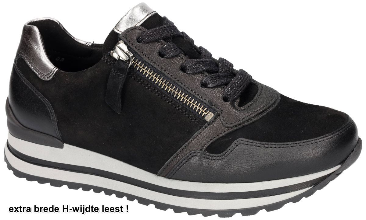 Gabor 56.528.37 Hoog comfort en toch sportieve uitstraling met deze Gabor 56.528.37 schwarz/antiksilber damessneakers uit de nieuwe herfst/winter 2024 collectie van het schoenenmerk Gabor. Deze sneakers zijn een perfecte combinatie van elegantie met praktische functionaliteit, ontworpen om aan al uw dagelijkse behoeften te voldoen. Kenmerken: Extra brede H-wijdte leest! Ideaal voor brede en volumineuze voeten, biedt ongeëvenaard comfort zonder in te leveren op stijl. Uitneembaar los voetbed: Biedt extra volume wanneer nodig en maakt het gemakkelijk om uw eigen steunzolen te gebruiken. Optifit technologie: Creëert extra ruimte wanneer het voetbed verwijderd is, waardoor deze sneakers bijzonder geschikt zijn voor volumineuze voeten. Hoogwaardig materiaal: Een mooie strakke combinatie van zwart zacht nubuck met zwart soepel leder en enkele zilver metallic details. Makkelijk te dragen: Voorzien van een praktische rits aan de zijkant voor snel aan- en uittrekken, gecombineerd met een vetersluiting voor een perfecte pasvorm. Kan als casual sneaker naar uw werk de week maar evengoed om uw stijlvol op te kleden, deze Gabor 56.528.37 sneakers zullen uw voeten verwennen met het comfort dat ze verdienen. Dankzij het stijlvolle ontwerp zijn ze gemakkelijk te combineren met zowel casual als meer geklede outfits. Kies voor de Gabor 56.528.37 damessneakers en ervaar het verschil dat kwaliteit en design kunnen maken! De nieuwe Gabor sneakers collectie kan men kopen in onze schoenenwinkel regio Aalst, Ninove, Geraardsbergen, Zottegem, Liedekerke of online bestellen op onze webshop.