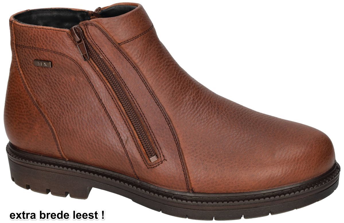G Comfort heren boots 959-8B Brown Pullup – warme lamsvachtlaarzen met dubbele rits. Ontdek ultiem comfort voor koude dagen met deze heren boots van G Comfort, model 959-8B in de uitvoering Brown Pullup. Deze halfhoge laars is vervaardigd uit echt rundleder met een natuurlijke, licht gevet pull-up finish die zorgt voor een warme, authentieke uitstraling en extra soepelheid in het dragen. Binnenin is de schoen volledig gevoerd met echt lamsvacht – een luxueuze natuurlijke isolatie die jouw voeten droog en behaaglijk houdt, zelfs bij vriesweer. Dankzij de geïntegreerde TEX-membraan blijven je voeten bovendien beschermd tegen regen en sneeuw, terwijl de schoen toch optimaal blijft ademen. De uitneembare comfort-inlegzool met leren dekzool biedt extra demping en kan eenvoudig worden vervangen door eigen steunzolen. Dankzij de dubbele ritssluiting aan beide zijden trek je deze boots moeiteloos aan en uit – praktisch en comfortabel in het dagelijks gebruik. De schoen heeft een H-wijdte leest, ideaal voor heren met wat bredere voeten. De speciale zoolconstructie met PUR-schuim in TPU-loopvlak zorgt voor uitstekende schokdemping en antislip-eigenschappen, waardoor deze boots zowel binnenshuis als buiten op natte ondergrond maximale grip bieden. Deze G Comfort herenlaarzen combineren robuuste duurzaamheid met warme luxe. Perfect voor wie in de winter niet wil inboeten aan comfort, pasvorm en stijl. G-comfort by Grünwald schoenen vindt men in onze schoenenwinkel regio Aalst, Ninove, Geraardsbergen, Zottegem, Liedekerke of kan men online bestellen op onze webshop.
