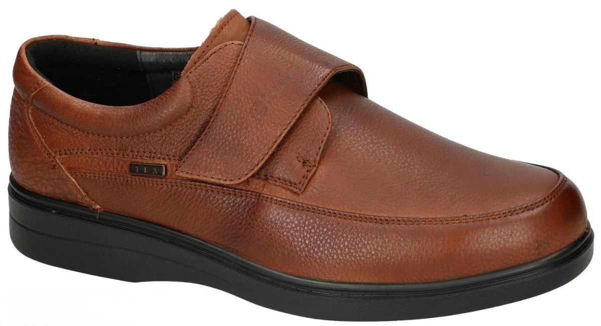 G-COMFORT by Grünwald schuhe artikel A-903 cognac-tan zijn cognac bruin lederen herenschoenen comfort bandschoenen of klittenbandschoenen van het Duitse schoenenbedrijf Glückschuh. Deze eenvoudige budgetvriendelijke maar toch zeer comfortabele mannenschoenen hebben een ruime H-wijdte leest en een gemakkelijke brede klittenbandsluiting (velcro). Deze mannen comfortschoenen hebben een uitneembaar los voetbed dat indien nodig kan vervangen worden door eigen steunzolen. Deze G-comfort schoenen zijn vervaardigd uit kwalitatief zwart leder en hebben een deels lederen voering zonder stiknaden + waterproof ademend speciaal textiel membraam aan de voorvoet om de voeten te verluchten. Functionele praktische kwaliteit schoenen voor weinig geld.Voor mannen die comfort op de eerste plaats stellen. G-comfort by Grünwald schoenen vindt men in onze schoenenwinkel regio Aalst, Ninove, Geraardsbergen, Zottegem, Liedekerke of kan men online bestellen op onze webshop.