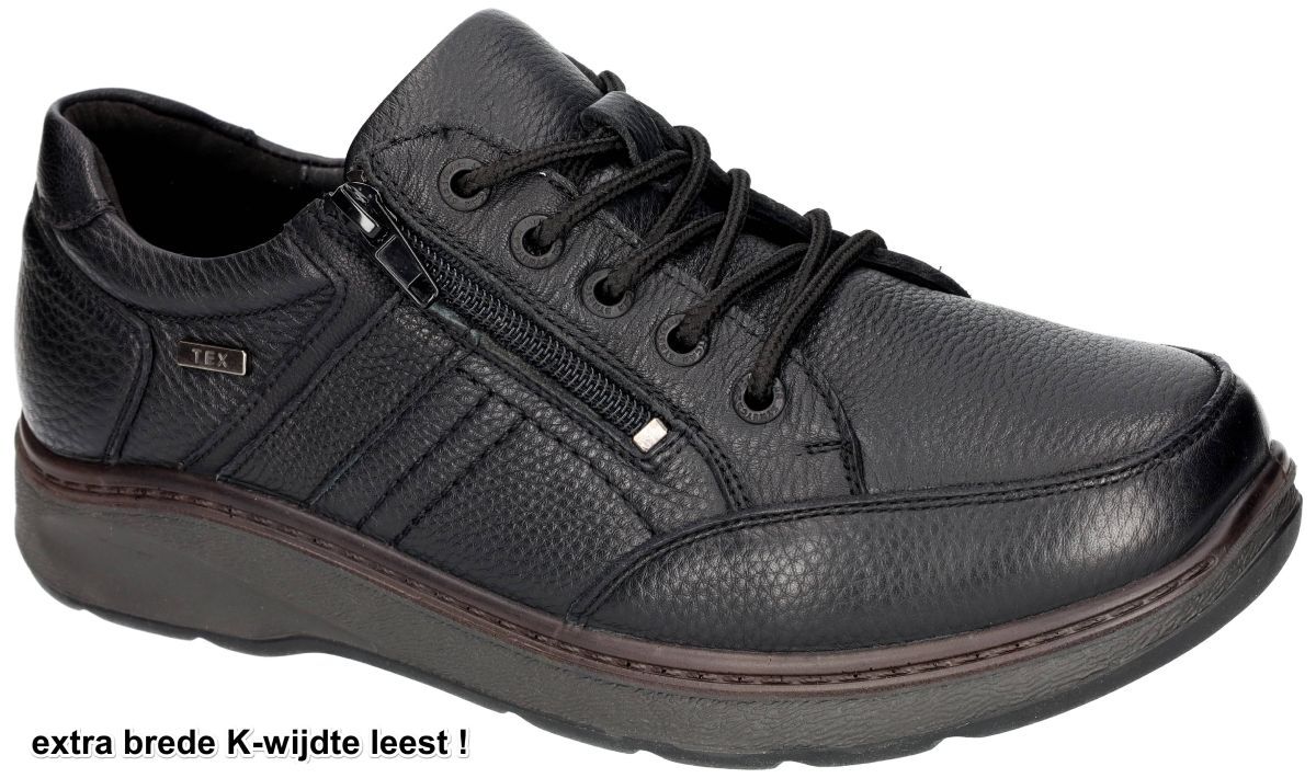 Deze zwarte G-Comfort herenschoenen, artikel 9889-2S, bieden ultiem draagcomfort en functionaliteit voor de moderne man met wat bredere en volumineuze voeten. Deze schoenen zijn voorzien van een extra brede K-wijdte leest, waardoor ze perfect zijn voor mannen met bredere voeten. Gemaakt van soepel wildleder, voelen de schoenen zacht aan en passen ze zich goed aan de vorm van de voet aan. Dankzij de handige rits + vetersluiting trek je de schoenen gemakkelijk aan en uit, terwijl je toch een stevige en aanpasbare pasvorm behoudt. Het uitneembare, zacht veerkrachtige latex voetbed biedt uitstekende demping en comfort tijdens het lopen, maar kan indien gewenst ook vervangen worden door uw eigen steunzolen. De randen van de schoenen zijn zacht gepolsterd, wat extra comfort rond de enkels biedt en irritatie voorkomt. Daarnaast zijn deze schoenen uitgerust met een schokabsorberende zool van 100% TPU, die niet alleen flexibel en duurzaam is, maar ook olie-resistent, wat ze ideaal maakt voor allerlei ondergronden. Met deze hoog comfortabele mannen sneakers ervaar je het beste van stijl, comfort en functionaliteit. G-comfort by Grünwald schoenen vindt men in onze schoenenwinkel regio Aalst, Ninove, Geraardsbergen, Zottegem, Liedekerke of kan men online bestellen op onze webshop.