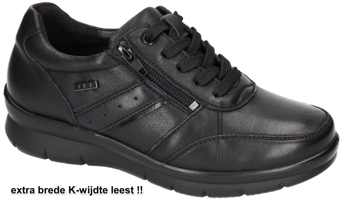 G-COMFORT by Grünwald schuhe artikel P-8262SN schwarz zijn zwarte lederen super brede orthopedische en podologische comfort damesschoenen meerbepaald sportieve veterschoenen estra brede sneakers van het Duitse schoenenbedrijf Glückschuh. Deze orthopedische/hoogcomfort vrouwenschoenen hebben een extra brede K-wijdte leest en zijn voorzien van zowel rits als veters waardoor aanpassen, aantrekken en uitstappen zeer gemakkelijk gaat. Deze comfortabele vrouwenschoenen zijn uitgevoerd in een mooi zwart soepel wildleder en het binnenwerk is zonder drukkende naden gemaakt uit zachte leder materialen. Het los uitneembaar voetbed kan zo nodig vervangen worden door eigen steunzolen. Voor vrouwen met wat bredere voeten, gezwollen voeten, hallux valgus enz of gewoon voor dames die comfort op de eerste plaats zetten. Top kwaliteit aan een zeer democratische prijs! G-comfort by Grünwald schoenen vindt men in onze schoenenwinkel regio Aalst, Ninove, Geraardsbergen, Zottegem, Liedekerke of kan men online bestellen op onze webshop.