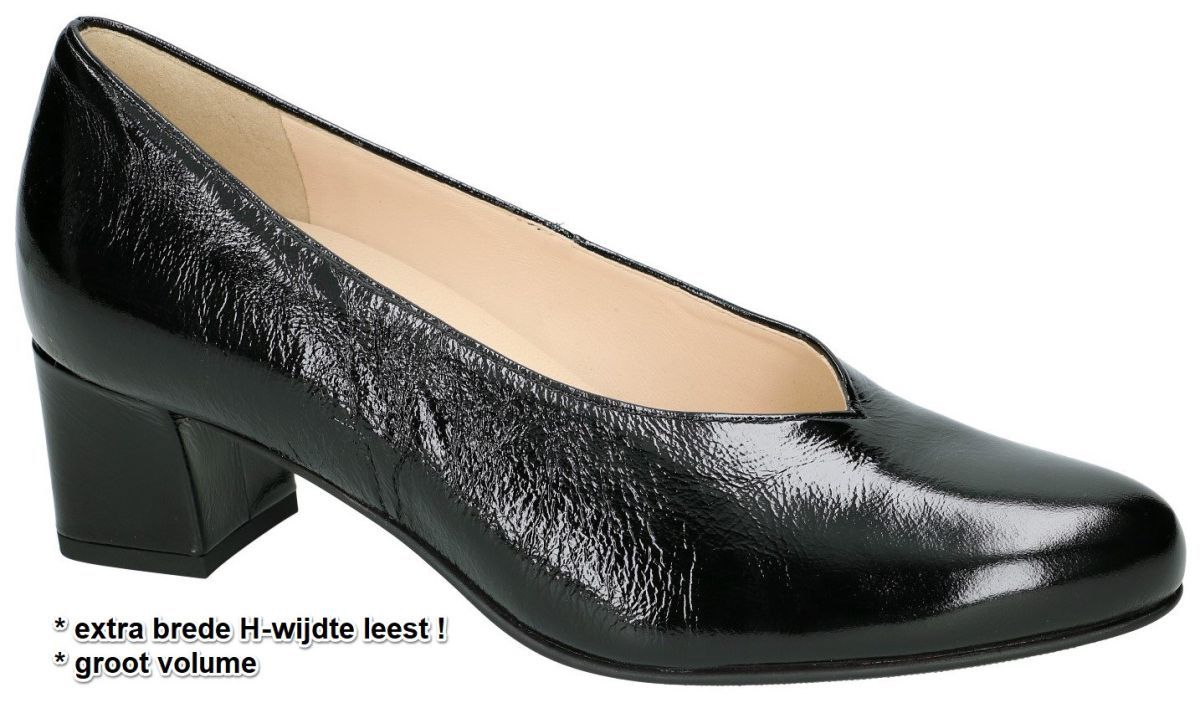 HASSIA artikel/model 30 4935 FLORENZ (H) Crushlack-leder schwarz/black zijn zwart lak extra brede damesschoenen geklede pumps of decolleté-schoenen met EXTRA BREDE H-wijdte leest uit de nieuwe herfst-winter collectie 2023 van het Oostenrijkse schoenenmerk HASSIA. Deze extra brede HASSIA Florenz pump speciaal voor brede, zware voeten staat op een blokhak van 5 cm en is vervaardigd uit hoog kwaliteit en duurzaam glanzend zwart kreukellak leder. Deze super comfortabele pumps zijn sacchetto gemaakt wat ze zeer aangenaam om dragen maakt. Door de losse inlegzool weg te nemen kan nog meer volume worden gecreëerd zodat met HASSIA zelfs dames met heel zware voeten toch een mooie geklede pump kunnen dragen. Ook zeer geschikt voor steunzolen! Oostenrijkse HASSIA damesschoenen vindt u in onze schoenenwinkel regio Aalst, Ninove of u kan online bestellen op onze webshop. Is uw maat niet op voorraad? Geen probleem bel of mail ons en we trachten u alsnog te helpen