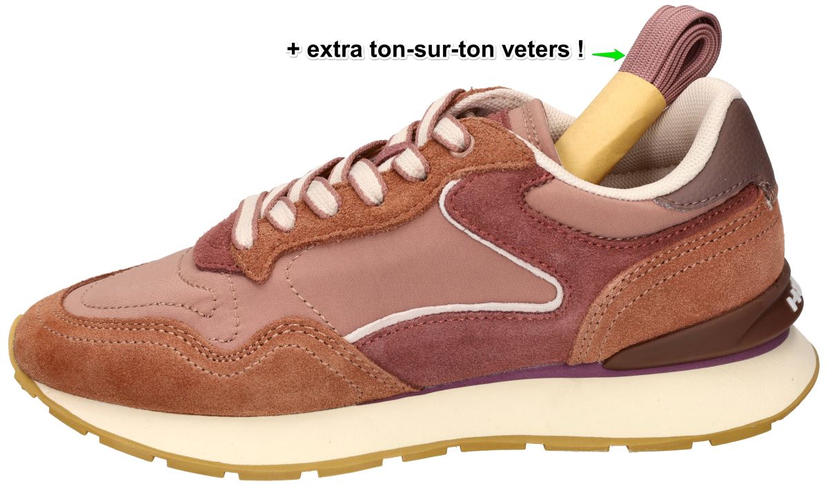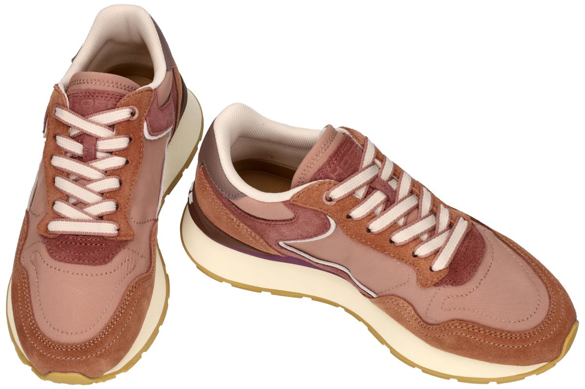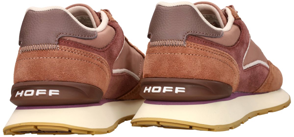 Deze Hoff runner sneakers uit de City-reeks in de unieke Terracotta (bruin-rood) uitvoering combineren een sportieve runnerstijl met een speelse retro-uitstraling en hedendaags comfort. Dit model uit de nieuwste Hoff collectie is ideaal voor wie kleur, stijl en draagcomfort moeiteloos wil samenbrengen in een moderne sneaker. Het bovenwerk is opgebouwd uit een hoogwaardige mix van zacht suède, ruw nubuck en technisch textiel, uitgevoerd in levendige camel-bruin, roest-bruin en donker-roze nuances. Subtiele accenten in offwhite en taupe zorgen voor een mooi evenwicht en geven de sneaker een frisse, modieuze uitstraling. De gelaagde panelen en verfijnde stiksels benadrukken de kwaliteit en het oog voor detail waar Hoff om bekendstaat. Aan de binnenzijde is deze Hoff City sneaker voorzien van een comfortabel, uitneembaar memory-foam voetbed dat zich aanpast aan de vorm van de voet en zorgt voor optimale demping en ondersteuning, zelfs bij langdurig dragen. De licht gewatteerde kraag en tong dragen bij aan een aangename en stabiele pasvorm. De lichte, dempende runnerzool in crèmekleurige uitvoering biedt uitstekende schokabsorptie, terwijl de rubberen loopzool met profiel zorgt voor goede grip en stabiliteit. Het subtiel geïntegreerde Hoff-logo op de hiel vormt een stijlvol en herkenbaar designelement. Dankzij zijn aparte terracotta kleurstelling is deze City runner perfect voor wie graag een accent toevoegt aan een casual outfit of een zomerse look wil versterken. Een sneaker die comfort en karakter perfect combineert. De grootste collectie Hoff sneakers vindt men in onze schoenenwinkel regio Aalst, Ninove, Geraardsbergen, Zottegem, Liedekerke of kunt u online bestellen op onze webshop.