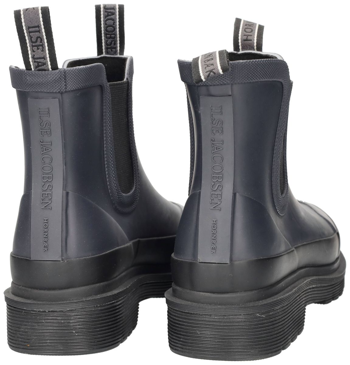 Handgemaakte korte regenlaarzen in Scandinavisch design. Deze Ilse Jacobsen Hornbæk RUB30C is een stijlvolle, handgemaakte regenlaars die functionaliteit combineert met typisch Deens minimalistisch design. Deze korte regenlaars in de donkerblauwe kleur Dark Indigo is ontworpen voor vrouwen die ook op natte en gure dagen modieus én comfortabel willen blijven. Gemaakt van duurzaam natuurlijk rubber uit gecontroleerde oogsten en volledig PVC-vrij, biedt deze laars een milieuvriendelijk alternatief zonder dierlijke bijproducten. De samenstelling van 52% puur rubber en 48% geheime receptformule zorgt voor een sterke, soepele en langdurig waterdichte bescherming. De zachte binnenvoering van katoen en polyester houdt je voeten droog en comfortabel, terwijl de lichte EVA-tussenzool schokken opvangt en isolerend werkt – bestand tegen temperaturen tot -20°C voor het rubber en -40°C voor de zool. De elastische Chelsea-inzetten aan de zijkant en de treklus aan de hiel maken het aantrekken bijzonder vlot. De anti-slipzool met ruwe schurende zones biedt maximale grip op gladde of ijzige ondergronden. Hierdoor zijn deze boots ideaal voor buitengebruik, wandelingen in de natuur of natte stadsdagen. Anderzijds moet men er voorzicht mee lopen op parket en delicate vloeren. Met de Ilse Jacobsen RUB30C Atmosphere trotseer je moeiteloos regen, sneeuw en kou in stijl. De perfecte combinatie van Scandinavische elegantie, comfort en functionaliteit – ontworpen om seizoen na seizoen mee te gaan. Ilse Jacobsen schoenen kan men aanschaffen in onze schoenenwinkel regio Aalst, Ninove, Geraardsbergen of online bestellen op onze webshop.