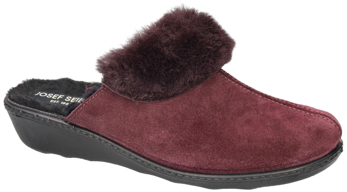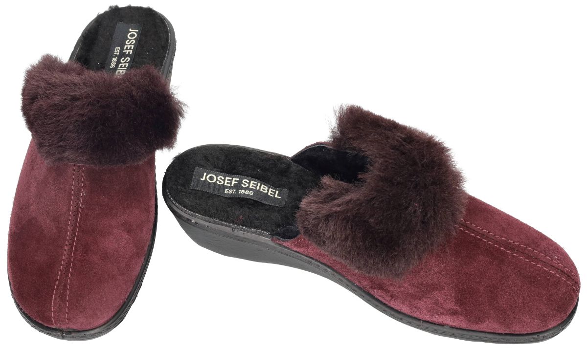 Josef Seibel Avignon 306 aubergine artikelnummer 85906 – pantoffels van echte lamsvacht. (vroeger verkocht onder de merknamen Romika en Westland). Deze luxueuze Josef Seibel Avignon 306 pantoffels combineren warmte, zachtheid en ambachtelijk comfort in één stijlvol ontwerp. Uitgevoerd in aubergine paars suède of nubuck met een voering van echte lamsvacht, bieden ze een ongeëvenaarde behaaglijkheid tijdens koude herfst- en winterdagen. De natuurlijke schapenvachtvoering reguleert de temperatuur op een natuurlijke manier: heerlijk warm in de winter en aangenaam droog bij langere draagtijd. De opstaande zachte kraag van pluizige wol omsluit de voet als een warme deken, terwijl de suède upper zorgt voor een elegante en huiselijke uitstraling. De ultra lichtgewicht PU-loopzool met antislip-eigenschappen biedt stabiliteit op gladde vloeren en is licht dempend, zodat uw voeten ook na uren comfort ervaren. Dankzij het instapmodel met open hiel glijdt u moeiteloos in en uit de pantoffel – ideaal voor dagelijks gebruik in huis. Deze Avignon 306 pantoffels zijn een toonbeeld van Josef Seibel’s ambacht sinds 1886: handgemaakt met oog voor detail, duurzaamheid en pure kwaliteit. Perfect voor wie houdt van natuurlijke materialen, warme voeten en tijdloos comfort. Josef Seibel pantoffels vindt men in onze schoenenwinkel regio Aalst, Ninove, Geraardsbergen, Zottegem, Liedekerke of kan men online bestellen via onze webshop.