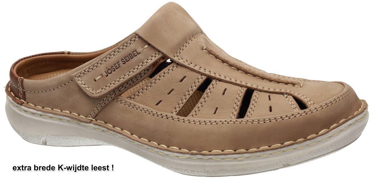 Josef Seibel New Anvers 76 – extra brede heren muilen voor ultiem comfort. Ervaar ongeëvenaard comfort met de Josef Seibel New Anvers 76 heren muilen in Kerala nubuk sand. Dit luchtige model uit de nieuwste collectie van het gerenommeerde Duitse merk Josef Seibel combineert een casual stijl met functioneel draagcomfort. Dankzij de extra brede K-leest biedt deze muil extra ruimte, ideaal voor heren met bredere voeten of steunzolen. Optimale pasvorm en ondersteuning . - Extra wide K-leest – speciaal ontworpen voor brede voeten . - Luchtige openingen op de wreef – ventilatie voor een fris gevoel . - Verstelbare klittenbandsluiting – eenvoudig aan te passen voor een perfecte pasvorm . - Los uitneembaar mals latex voetbed – zachte demping bij elke stap . - Diepe kuipuitsparing – geschikt voor eigen steunzolen . Duurzaam en schokabsorberend design. Deze Josef Seibel muil is uitgevoerd in beste kwaliteit camel-bruin of beige nubuckleer met een stijlvol cognackleurig detail aan de hiel. De schokabsorberende anti-slip zool zorgt voor extra stabiliteit en grip, zowel binnens- als buitenshuis. Of je nu op zoek bent naar een luchtige en brede muil voor in huis of een comfortabele instapper voor buiten, de Josef Seibel New Anvers 76 biedt de perfecte mix van stijl en comfort. Bestel nu en ervaar het verschil! JOSEF SEIBEL 44976 NEW ANVERS 76 nubuk/kombi dunkelblau zijn licht bruine EXTRA BREDE K-wijdte leest mannen muil pantoffels of sloffen van het Duitse schoenenmerk Josef Seibel! Deze herenpantoffel of slof is uitgevoerd in mooi zacht licht bruin of donker beige nubuck met luchtige sandaal inkepingen om de voeten fris te houden. Deze praktische en functionele mannen sloffen zijn voorzien van een extra brede K-wijdte leest en een dik los voetbed dat perfect kan vervangen worden door uw eigen steunzolen. Uitermate geschikt voor mannen met zeer brede of zware voeten en tevens perfect voor dikke eigen steunzolen in te leggen. Josef Seibel schoenen vindt men in onze schoenenwinkel regio Aalst, Ninove,Geraardsbergen, Liedekerke of kan men online bestellen op onze webshop.