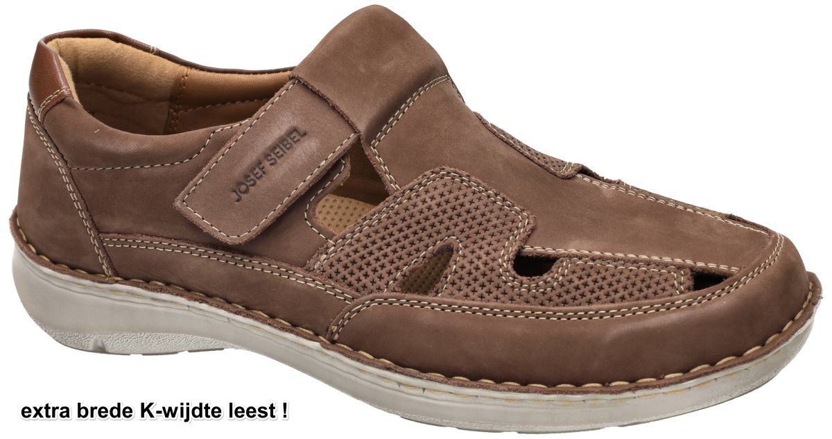 Josef Seibel New Anvers 81 - Extra brede herensandalen met ultiem comfort. De Josef Seibel New Anvers 81 in de uitvoering Kerala nubuck braun is de ideale keuze voor heren die op zoek zijn naar maximaal comfort en een ruime pasvorm. Deze gesloten sandaal is uitgevoerd in een extra brede K-wijdte leest, wat zorgt voor een ongeëvenaarde pasvorm voor brede en volumineuze voeten. Kenmerken van de Josef Seibel New Anvers 81: Extra brede K-wijdte: Perfect voor heren die extra ruimte nodig hebben in hun schoeisel. Chocolade bruin of cacao-bruin nubuck upper: hoogkwalitatief en stijlvol nubuckleer dat zacht en duurzaam is. Uitneembaar latex voetbed: Een malse, schokabsorberende binnenzool voor optimaal loopcomfort. Geschikt voor steunzolen: Het voetbed is eenvoudig te vervangen door eigen orthopedische inlegzolen. Klittenbandsluiting: Voor een makkelijke instap en perfecte pasvorm. Kalfslederen binnenvoering: Voelt zacht aan de voet en verhoogt het draagcomfort. Schokabsorberende loopzool: Vermindert de impact van uw gewicht en op de gewrichten en zorgt voor stabiliteit bij elke stap. Comfort en functionaliteit in één! De Josef Seibel New Anvers 81 is ontworpen voor lange dagen op de been, of dat nu thuis, op vakantie of tijdens een wandeling is. De combinatie van hoogwaardige materialen en een verfijnd ontwerp maakt deze schoen een betrouwbare keuze voor heren die zowel stijl als functionaliteit waarderen. Waarom kiezen voor Josef Seibel New Anvers 81? Deze herensandalen zijn de perfecte balans tussen luchtige openingen en een beschermende gesloten constructie, waardoor ze ideaal zijn voor warmere dagen zonder in te boeten op stevigheid. Dankzij de flexibele zool en ruime pasvorm ervaart de drager een natuurlijke afwikkeling van de voet, terwijl het schokabsorberende vermogen zorgt voor een soepele tred. Upgrade je zomergarderobe met de Josef Seibel New Anvers 81 en ervaar het ultieme comfort van een extra brede pasvorm, een zacht voetbed en een duurzaam design! Josef Seibel herenschoenen vindt men in onze schoenenwinkel regio Aalst, Ninove, Geraardsbergen, Zottegem, Liedekerke of kan men online bestellen op onze webshop.
