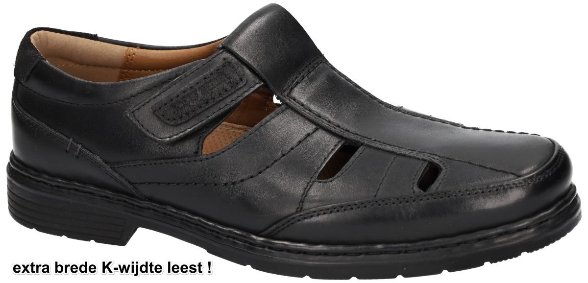 Ontdek de ultieme combinatie van stijl en comfort met de Josef Seibel 42808 Alastair herensandalen in glanzend zwart leder. Deze geklede herensandalen zijn perfect voor de moderne man die op zoek is naar hoogwaardige schoenen die niet alleen modieus zijn, maar ook uitzonderlijk draagcomfort bieden. Extra Brede Pasvorm : De Josef Seibel 42808 Alastair sandalen zijn ontworpen met een extra brede K-wijdte leest. Deze eigenschap zorgt ervoor dat de sandalen comfortabel passen, zelfs voor mannen met bredere voeten. De ruime pasvorm voorkomt knellen en biedt de hele dag door een ontspannen gevoel. Uitneembaar voetbed Een van de meest opvallende kenmerken van deze sandalen is het losse, uitneembare voetbed. Dit biedt niet alleen extra comfort, maar maakt het ook mogelijk om de sandalen aan te passen met uw eigen steunzolen. Hierdoor zijn de sandalen ideaal voor mannen die behoefte hebben aan orthopedische ondersteuning. Hoogwaardige Materialen: Gemaakt van hoogwaardig leer, stralen de Josef Seibel 42808 Alastair sandalen klasse en duurzaamheid uit. Het zwart opgepoetst leder geeft een tijdloze en veelzijdige uitstraling die makkelijk te combineren is met verschillende outfits. Of u nu een casual wandeling maakt of een nette gelegenheid bijwoont, deze sandalen zijn een perfecte keuze. Perfecte Pasvorm en Ondersteuning: De verstelbare klittenbandsluiting zorgt ervoor dat de sandalen altijd goed aansluiten en biedt extra steun aan uw voeten. De stevige rubberen zool biedt uitstekende grip en stabiliteit, waardoor u met vertrouwen kunt lopen op verschillende ondergronden. Conclusie: De Josef Seibel 42808 Alastair herensandalen in zwart leder zijn een must-have voor elke man die op zoek is naar een combinatie van stijl, comfort en functionaliteit. Met hun extra brede pasvorm, uitneembare voetbed en hoogwaardige materialen, bieden deze sandalen alles wat u nodig heeft voor een comfortabele en stijlvolle zomer. Kies voor Josef Seibel en ervaar zelf het verschil in kwaliteit en comfort. Verhoog uw stijl en comfort met de Josef Seibel 42808 Alastair herensandalen - de perfecte metgezel voor elke gelegenheid.