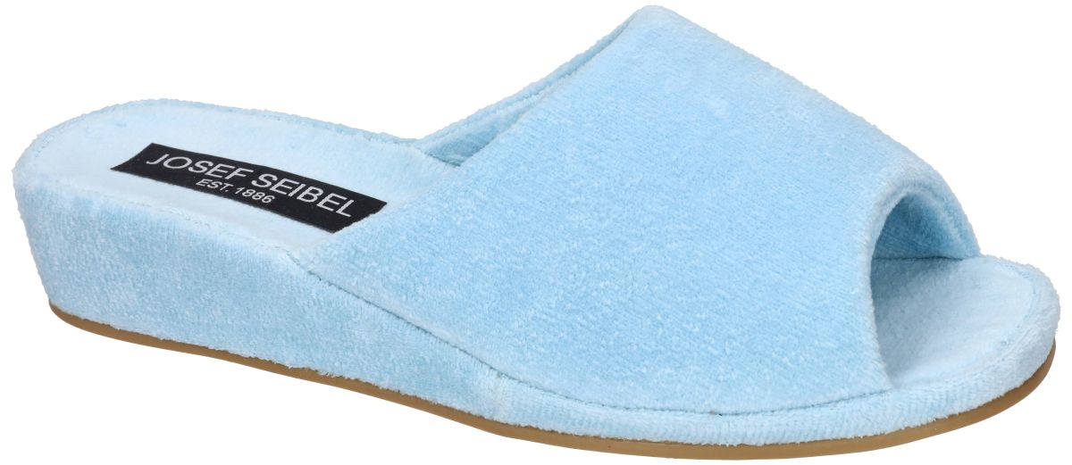 Het Josef Seibel model Marseille 01 (17801) zijn comfortabele dames-/unisex-huis-slippers of sloffen of pantoffels uitgevoerd in hemelsblauw of babyblue zachte katoen textiel badstof (terry cloth), inclusief voetbed in hetzelfde materiaal. Deze aangenaam zachte binnenhuis sloffen staan trouw op post zodra u 's ochtends uit bed stap maar worden eveneens gebruikt als u net een bad genomen heeft of gedoucht. Daarom noemen we ze ook badslippers. Deze slipper is voorzien van een robuuste rubberen zool die antislip, flexibel, waterbestendig, slijtvast en duurzaam is. De slipper heeft een sleehak (ongeveer 30–40mm) en is voorzien van een licht verhoogde zool . Constructie & pasvorm : Gemaakt volgens de AGO-productiemethode, waarbij de zool gestikt en gelijmd wordt – wat resulteert in een lichte, vormstabiele schoen. Geschikt voor een normale voetbreedte (breedte G) en valt over het algemeen normaal op maat. Gemakkelijk aan- en uit te trekken dankzij de instap muil-vorm. Wordt gepresenteerd als onderdeel van de “Relax”-collectie, gericht op comfort en duurzame slow fashion. Meestal beschikbaar in damesmaten van 35 tot 42 halve maten inclusief. Conclusie De Josef Seibel Marseille 01 slippers (17801) zijn comfortabele badstof huis-slippers met een stevige rubberen sleehakzool. Ze zijn licht, flexibel en antislip, dankzij de degelijke AGO-constructie. Verkrijgbaar in diverse kleuren, ideaal voor dagelijks gebruik thuis—een fijne keuze voor wie zachte, betrouwbare slippers zoekt. Josef Seibel Marseille badslippers vindt u in onze schoenenwinkel regio Aalst, Ninove, Geraardsbergen of kan men online bestellen op onze webshop.