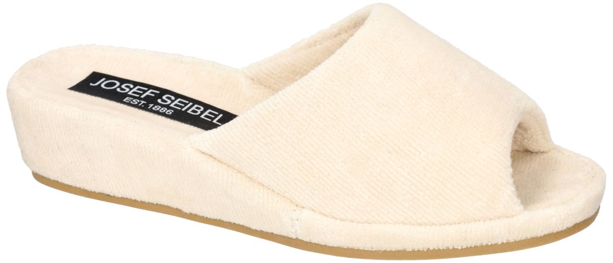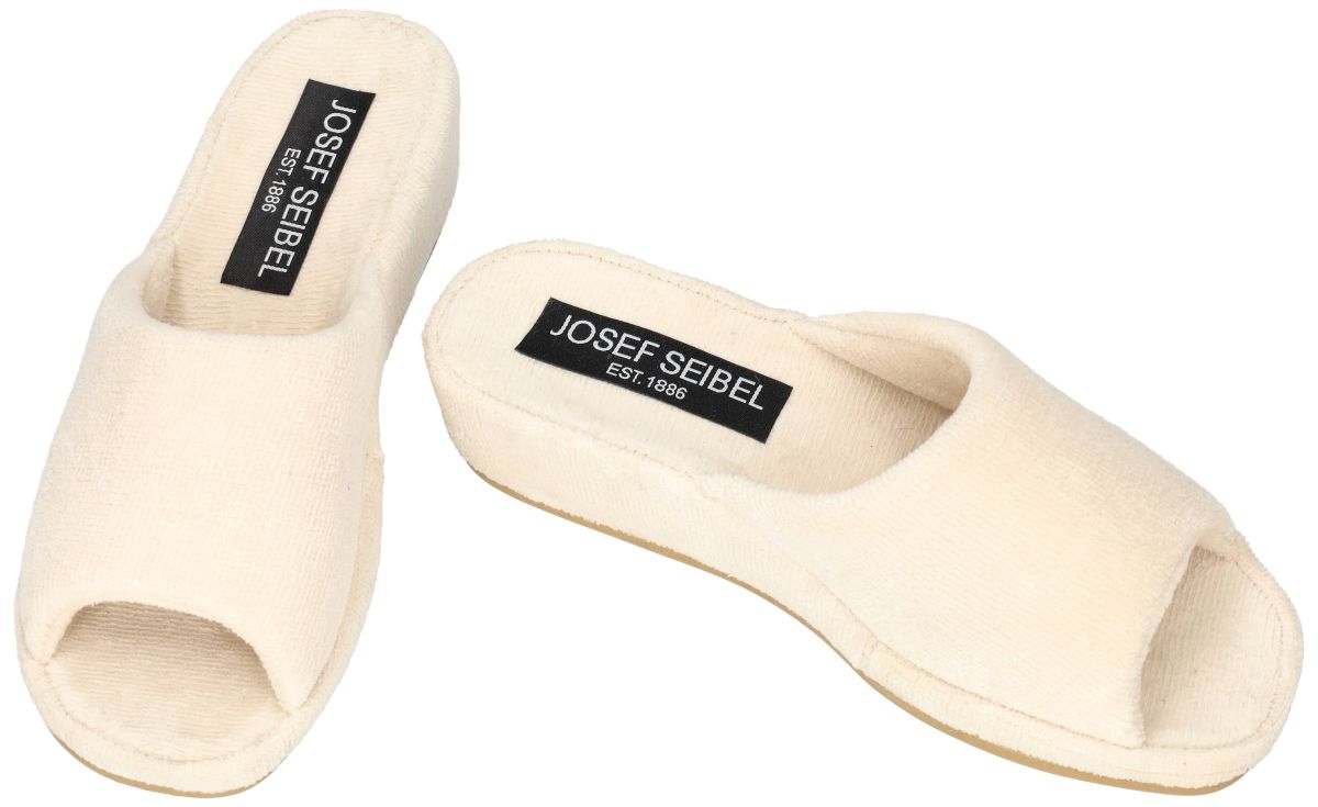 Het Josef Seibel model Marseille 01 zijn comfortabele dames pantoffels meer bepaald badslippers uitgevoerd in crème-wit of katoen-wit badstof textiel (terry cloth), inclusief voetbed in hetzelfde materiaal. Deze aangenaam zachte sloffen staan trouw op post zodra u 's ochtends uit bed stap maar worden eveneens gebruikt als u net een bad genomen heeft of gedoucht. Daarom noemen we ze ook badslippers. Deze slipper is voorzien van een robuuste rubberen zool die antislip, flexibel, waterbestendig, slijtvast en duurzaam is. De slipper heeft een sleehak (ongeveer 30–40mm) en is voorzien van een licht verhoogde zool . Geschikt voor een normale voetbreedte (breedte G) en valt over het algemeen normaal op maat. Conclusie De Josef Seibel Marseille 01 slippers (17801) zijn comfortabele badstof huis-slippers met een stevige rubberen sleehakzool. Josef Seibel Marseille badslippers vindt u in onze schoenenwinkel regio Aalst, Ninove, Geraardsbergen, Zottegem, Liedekerke of kan men online bestellen op onze webshop.