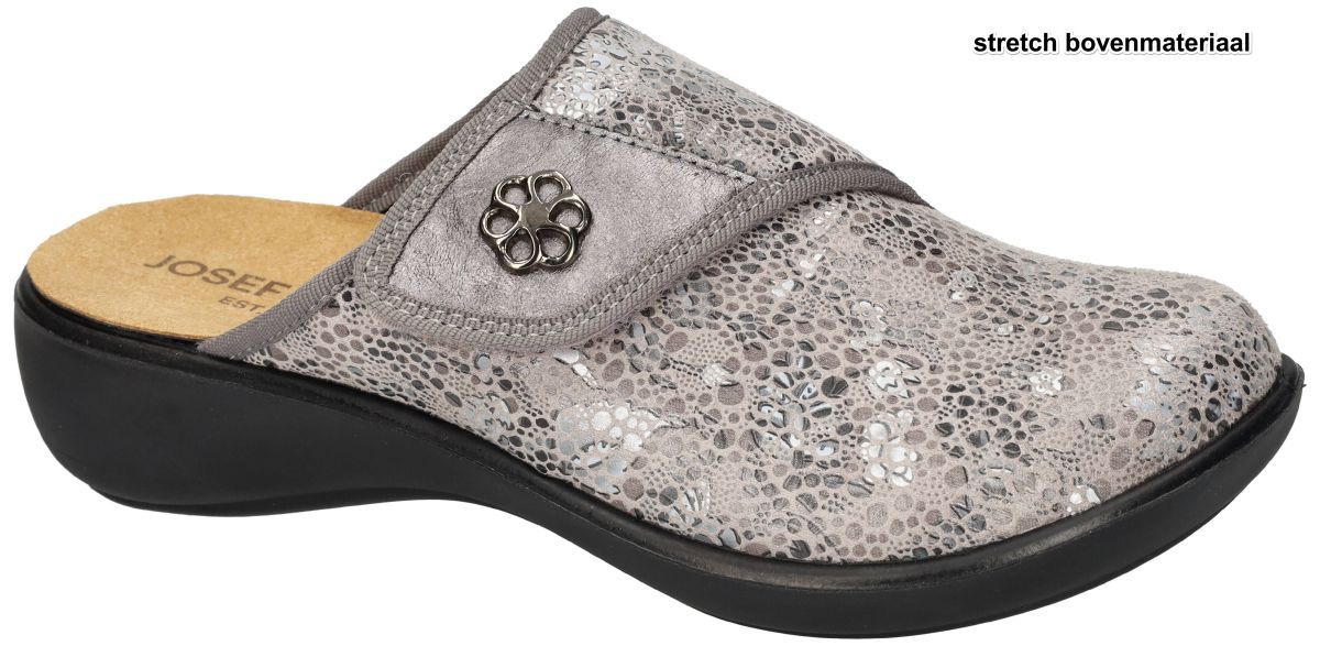 Josef Seibel Korsika 48 – Relax Wellness muiltjes in hellgrau met stretch comfort en stijlvolle print. Op zoek naar comfortabele en stijlvolle muiltjes voor dagelijks gebruik in huis of onderweg? Deze Josef Seibel Korsika 48, artikel 83848 in de kleur Hellgrau, biedt het perfecte samenspel tussen ontspanning, ondersteuning en elegantie. Deze clogs of muil sloffen voor vrouwen uit de populaire "Relax Wellness" serie zijn ontworpen met het oog op zowel comfort als pasvorm – ideaal voor gevoelige of vermoeide voeten. Het bovenwerk van deze muiltjes is gemaakt van rekbaar microvelour stretchmateriaal, dat zich soepel aanpast aan de vorm van de voet en de wreef. Dit maakt de Korsika 48 perfect voor vrouwen met een gemiddelde tot ietwat bredere voet, dankzij de comfortabele G-wijdte leest. De brede klittenbandsluiting boven de wreef zorgt voor extra verstelbaarheid, waardoor de schoen altijd mooi aansluit zonder te knellen. Het uitneembare voetbed is anatomisch gevormd en kan eenvoudig vervangen worden door eigen steunzolen – ideaal voor wie extra orthopedische ondersteuning nodig heeft. De schokabsorberende PU-geïnjecteerde loopzool biedt niet alleen uitstekende grip, maar zorgt ook voor een comfortabele, verende stap dankzij de lichte hielverhoging van 2 cm. De upper is stijlvol afgewerkt met een subtiele fantasieprint in zilver, grijs en taupe tinten, wat deze wellness-schoen een verfijnde, vrouwelijke uitstraling geeft. Een elegant bloemdetail op de wreef maakt het geheel helemaal af. Belangrijkste kenmerken: - Model: Josef Seibel Korsika 48 - Artikelnummer: 83848. - Kleur: Hellgrau - G-wijdte leest: geschikt voor normale tot iets bredere voeten. - Stretch microvelour bovenmateriaal dat zich aanpast aan de voet. - Verstelbare klittenbandsluiting over de wreef . - Uitneembaar voetbed, geschikt voor eigen steunzolen. - Schokdempende PU-zool met ca. 2 cm hakverhoging. - Fantasieprint in zilver, grijs en taupe voor een moderne look. - Met de Josef Seibel Korsika 48 muiltjes kies je voor dagelijkse luxe en ondersteuning in één – ideaal voor wie stijl en comfort moeiteloos wil combineren. Josef Seibel sloffen, clogs, slippers kan men kopen in onze schoenenwinkel regio Aalst, Ninove, Geraardsbergen, Zottegem, Liedekerke of online bestellen op onze webshop.