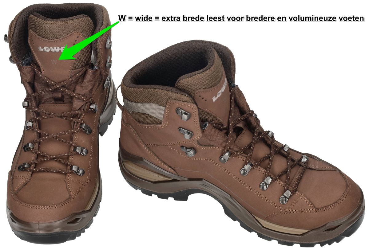 Lowa Renegade EVO GTX MID Wide – Voor mannen met brede voeten én avontuurlijke plannen. Zoek jij een stevige, comfortabele en stijlvolle wandelschoen met extra ruimte voor je voeten? Maak dan kennis met de Lowa Renegade EVO GTX MID Wide in de bruine kleur espresso/seegras. Deze vernieuwde versie van de populaire Renegade MID is speciaal ontwikkeld voor heren met een bredere en/of volumineuzere voet – zonder concessies aan pasvorm, grip of bescherming. De “WIDE”-leest biedt extra ruimte bij de voorvoet, waardoor drukpunten worden voorkomen en langdurig wandelcomfort gegarandeerd is. Of je nu door nat gras, modderige paden of bergachtig terrein loopt: de GORE-TEX®-voering houdt je voeten droog en ademend, in weer en wind. Met zijn robuuste nubucklederen bovenwerk, geoptimaliseerde DynaPU® tussenzool en betrouwbare Vibram® Evo zool sta je stevig in je schoenen – letterlijk én figuurlijk. De MONOWRAP®-frameconstructie geeft extra stabiliteit en beschermt je voet bij elke stap. Belangrijkste voordelen: WIDE-pasvorm: extra brede leest voor optimaal comfort bij bredere voeten. GORE-TEX® membraan: 100% waterdicht én ademend. DynaPU®-tussenzool: voor langdurige demping en veerkracht. Vibram® Evo zool: uitstekende grip op allerlei terreinen. MONOWRAP®-frame: extra stabiliteit en ondersteuning. anthrazit/stahlblau kleurstelling: sportieve en mannelijke uitstraling. Geschikt voor dagtochten, trekking, bergwandelingen en meer . Waarom kiezen voor de Renegade EVO GTX MID Wide? Deze schoen combineert het beste van comfort, stabiliteit en bescherming, speciaal afgestemd op de anatomie van een mannenvoet. Dankzij de vernieuwde EVO-constructie is deze variant nóg comfortabeler dan zijn voorganger – ideaal voor wie kilometers wil maken zonder zere voeten. Voor mannen met brede voeten die geen genoegen nemen met minder dan het beste – kies de Lowa Renegade EVO GTX MID Wide en ga elke uitdaging aan. LOWA RENEGATE berg/wandel/trekking schoenen vindt men bij KARO in de schoenenwinkel regio Aalst, Ninove, Geraardsbergen, Liedekerkeof kan men online bestellen op onze webshop. Is uw maat niet op voorraad of wenst u ander kleur,extra smal of extra breed dan kunnen we die voor u bestellen kan van maat 35 tot 44 halve maten inclusief !