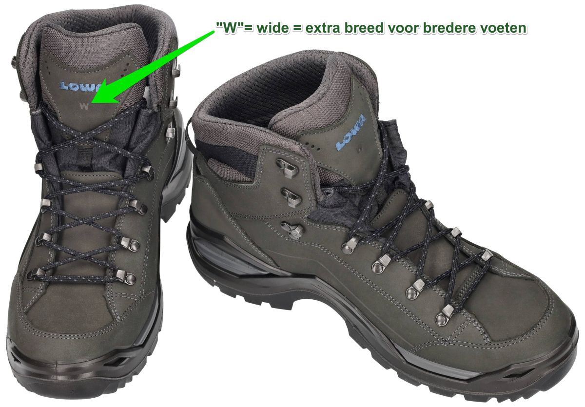 Lowa Renegade EVO GTX MID Wide – Voor mannen met brede voeten én avontuurlijke plannen. Zoek jij een stevige, comfortabele en stijlvolle wandelschoen met extra ruimte voor je voeten? Maak dan kennis met de Lowa Renegade EVO GTX MID Wide in de kleur anthrazit/stahlblau. Deze vernieuwde versie van de populaire Renegade MID is speciaal ontwikkeld voor heren met een bredere en/of volumineuzere voet – zonder concessies aan pasvorm, grip of bescherming. De “WIDE”-leest biedt extra ruimte bij de voorvoet, waardoor drukpunten worden voorkomen en langdurig wandelcomfort gegarandeerd is. Of je nu door nat gras, modderige paden of bergachtig terrein loopt: de GORE-TEX®-voering houdt je voeten droog en ademend, in weer en wind. Met zijn robuuste nubucklederen bovenwerk, geoptimaliseerde DynaPU® tussenzool en betrouwbare Vibram® Evo zool sta je stevig in je schoenen – letterlijk én figuurlijk. De MONOWRAP®-frameconstructie geeft extra stabiliteit en beschermt je voet bij elke stap. Belangrijkste voordelen: WIDE-pasvorm: extra brede leest voor optimaal comfort bij bredere voeten. GORE-TEX® membraan: 100% waterdicht én ademend. DynaPU®-tussenzool: voor langdurige demping en veerkracht. Vibram® Evo zool: uitstekende grip op allerlei terreinen. MONOWRAP®-frame: extra stabiliteit en ondersteuning. anthrazit/stahlblau kleurstelling: sportieve en mannelijke uitstraling. Geschikt voor dagtochten, trekking, bergwandelingen en meer . Waarom kiezen voor de Renegade EVO GTX MID Wide? Deze schoen combineert het beste van comfort, stabiliteit en bescherming, speciaal afgestemd op de anatomie van een mannenvoet. Dankzij de vernieuwde EVO-constructie is deze variant nóg comfortabeler dan zijn voorganger – ideaal voor wie kilometers wil maken zonder zere voeten. Voor mannen met brede voeten die geen genoegen nemen met minder dan het beste – kies de Lowa Renegade EVO GTX MID Wide en ga elke uitdaging aan. LOWA RENEGATE berg/wandel/trekking schoenen vindt men bij KARO in de schoenenwinkel regio Aalst, Ninove, Geraardsbergen, Liedekerkeof kan men online bestellen op onze webshop. Is uw maat niet op voorraad of wenst u ander kleur,extra smal of extra breed dan kunnen we die voor u bestellen kan van maat 35 tot 44 halve maten inclusief !