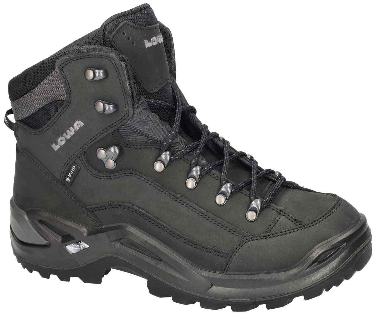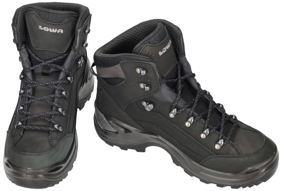 Lowa Renegade GTX Mid 311945 – tiefschwaz / deep black . Deze Lowa Renegade GTX Mid 311945 in de kleur 09984 tiefschwarz is een van de meest geliefde wandelschoenen uit de Lowa-collectie. Deze halfhoge outdoorschoen combineert degelijkheid, comfort en stabiliteit in één betrouwbaar ontwerp – ideaal voor dagtochten, bergwandelingen of avontuurlijke hikes in wisselende weersomstandigheden. Het bovenwerk in mat zwart nubuckleer krijgt een moderne uitstraling dankzij de zilvergrijze textielaccenten rond de tong en schacht. Binnenin zorgt het GORE-TEX membraan voor een waterdichte en ademende bescherming, zodat uw voeten droog blijven bij regen, plassen of nat gras. De gevoerde kraag en tong bieden extra draagcomfort, terwijl de robuuste metalen veterhaken zorgen voor een nauwkeurige en stabiele pasvorm. De Vibram® Evo loopzool biedt uitstekende grip op uiteenlopende ondergronden. Dankzij het Lowa MONOWRAP®-frame geniet u van optimale zijdelingse steun en demping bij elke stap. De tussenzool in DuraPU® absorbeert schokken en verhoogt het loopcomfort, zelfs bij langere afstanden of ongelijk terrein. Deze Renegade GTX Mid is met recht een klassieker onder de wandelschoenen: licht in gewicht, duurzaam en direct comfortabel vanaf de eerste pas. Perfect voor wie betrouwbare ondersteuning zoekt tijdens wandeltochten in de Ardennen, Alpen of langs ruige kustpaden. Lowa wandelschoenen vindt men in onze schoenenwinkel regio Aalst, Ninove, Geraardsbergen, Zottegem, Liedekerke of kan men online bestellen via onze webshop.